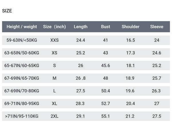 • Size:XXS,XS,S,M,L,XL,XXL