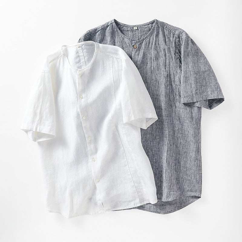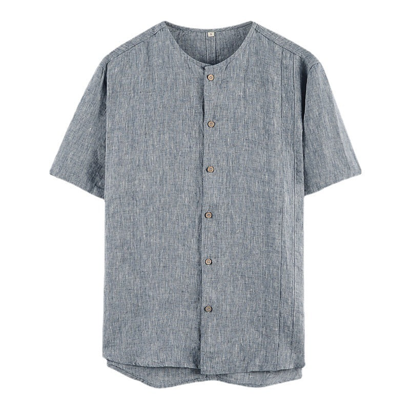 Men's 100% Linen Button-up Collar Casual Shirt B008