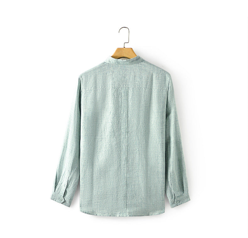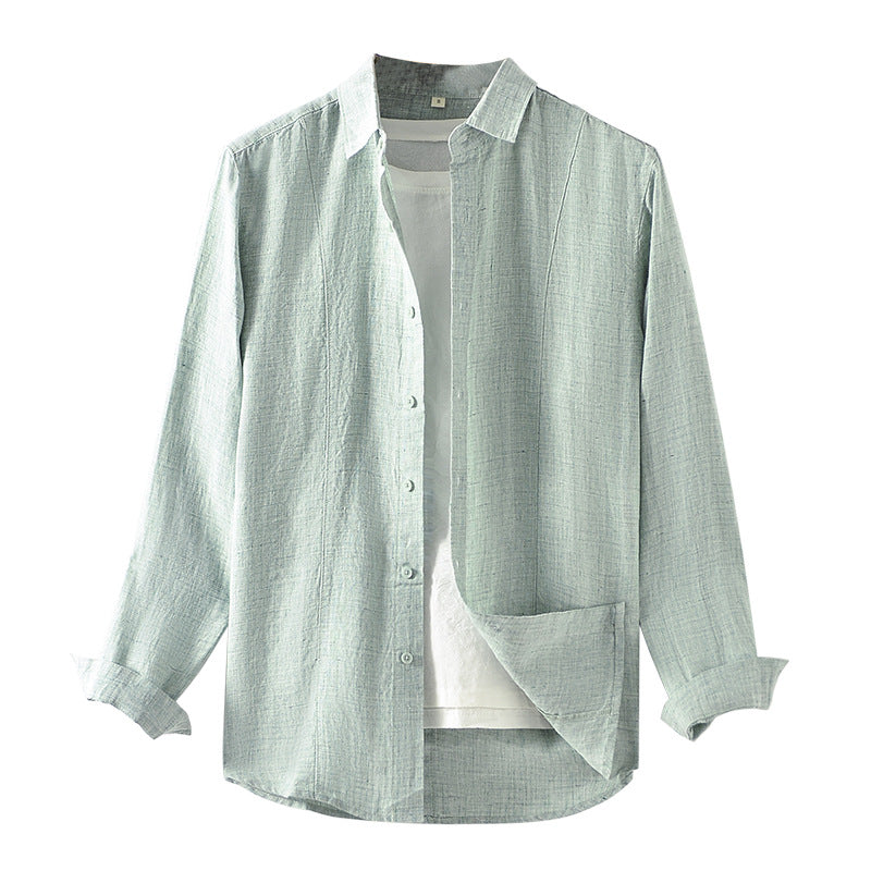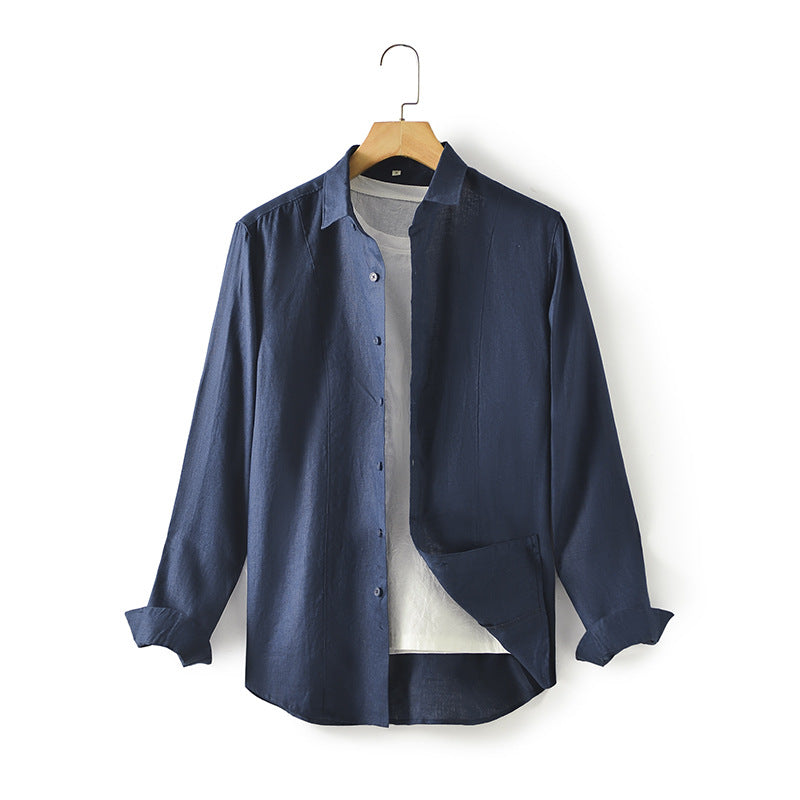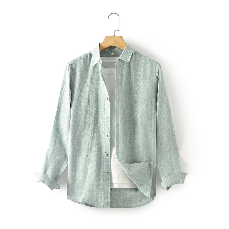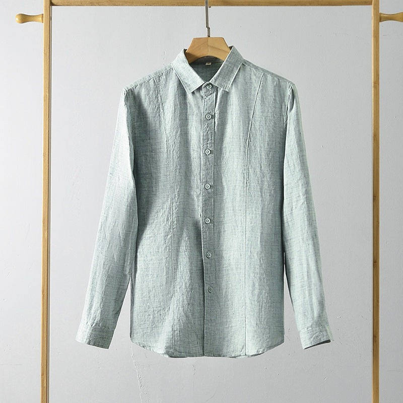 Men's Linen Long Sleeve Shirt Lapel Collar Solid Color Shirt E008