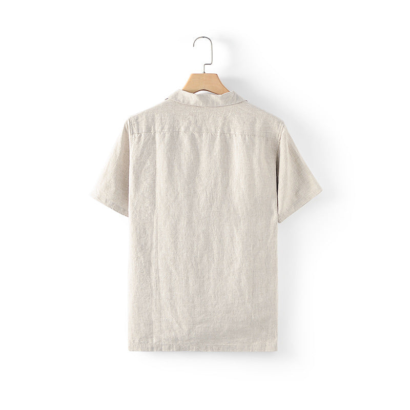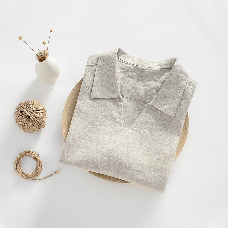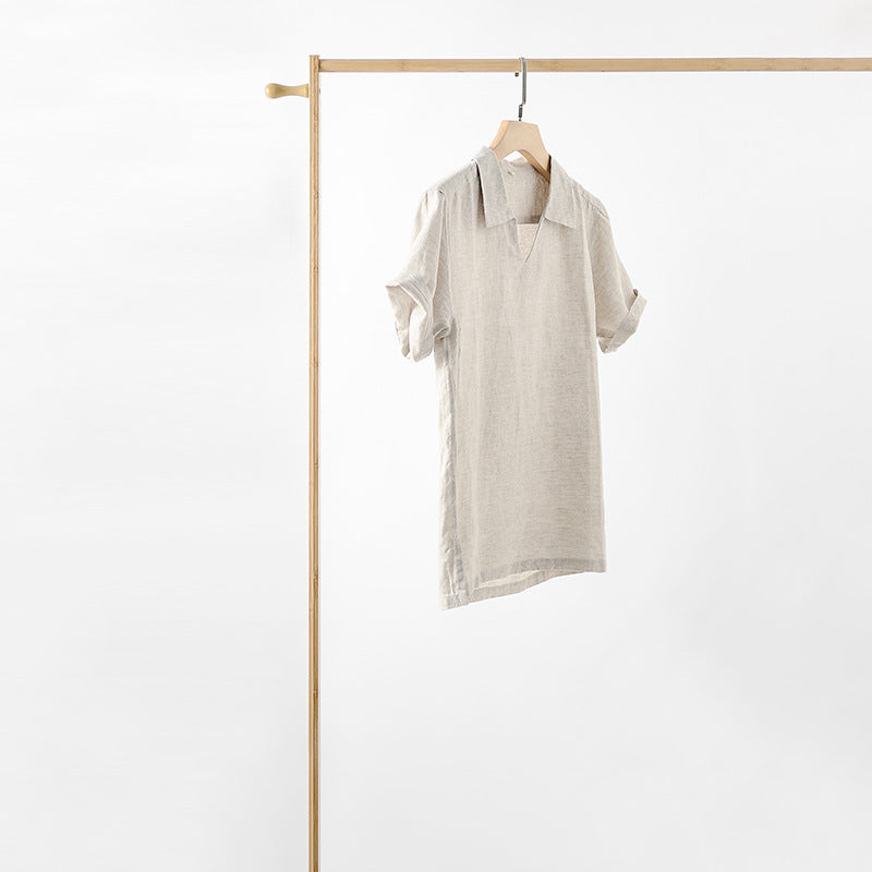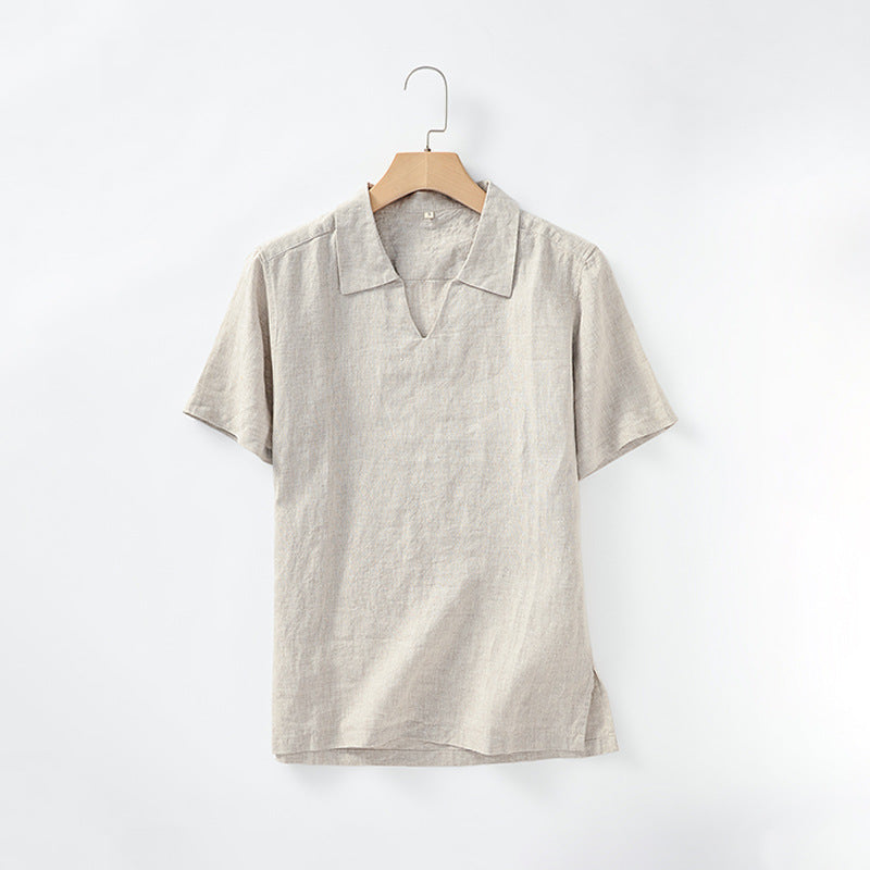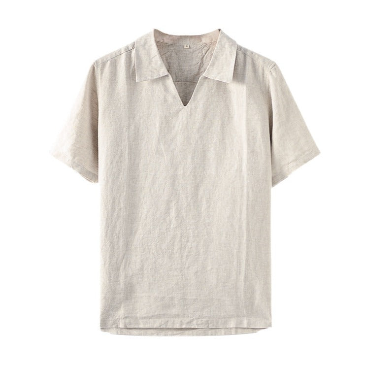 Men's 100% Linen Lapel V-neck Polo Shirt D047