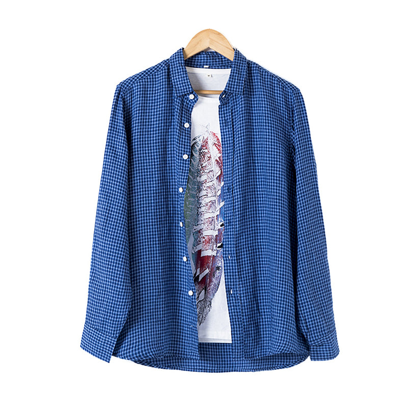 Autumn Linen Men's Clothing Casual Loose Linen Shirt B056