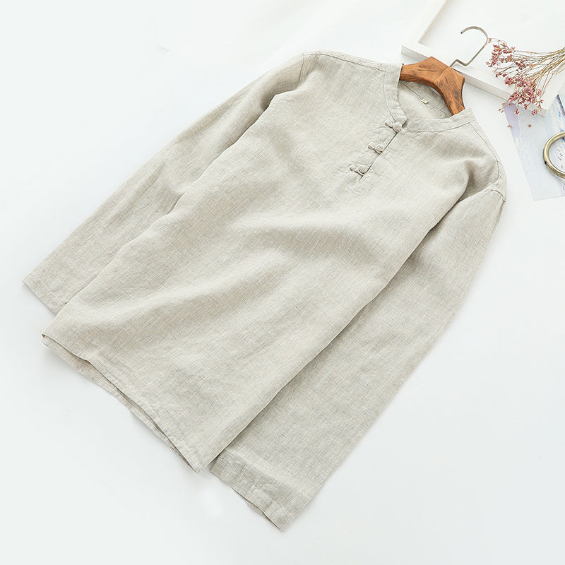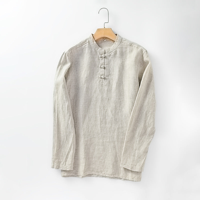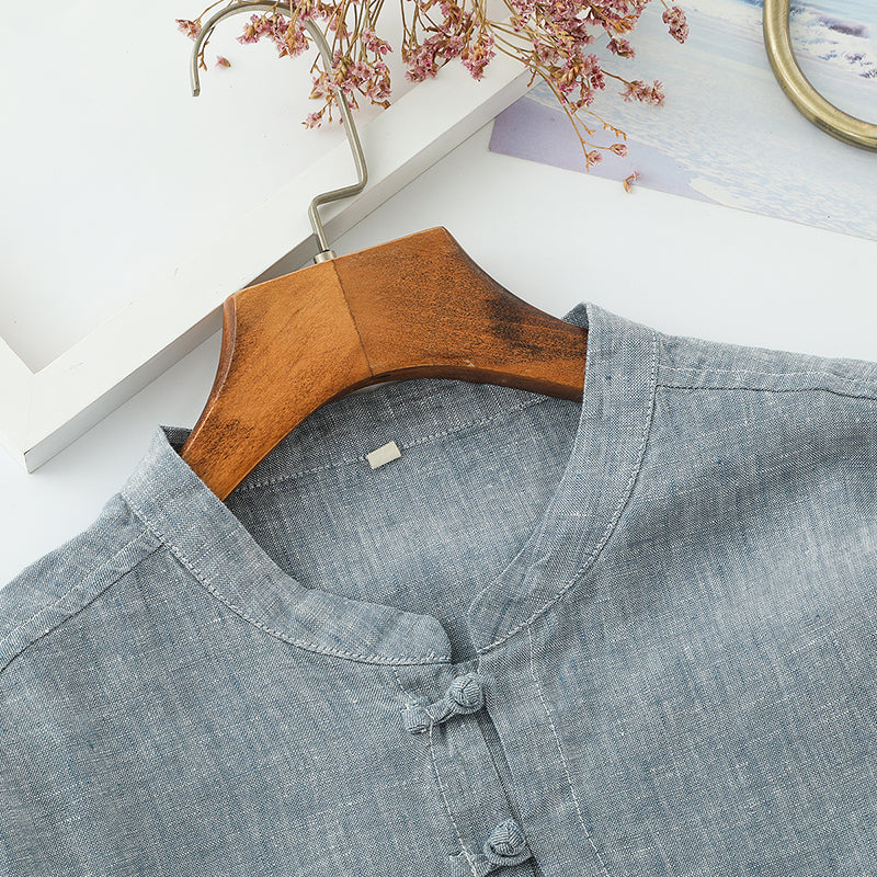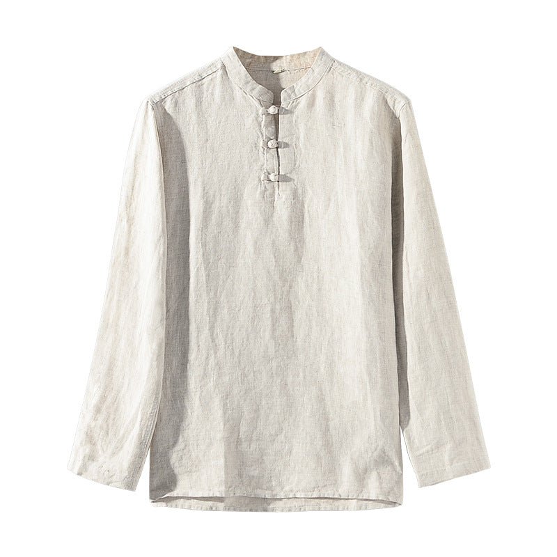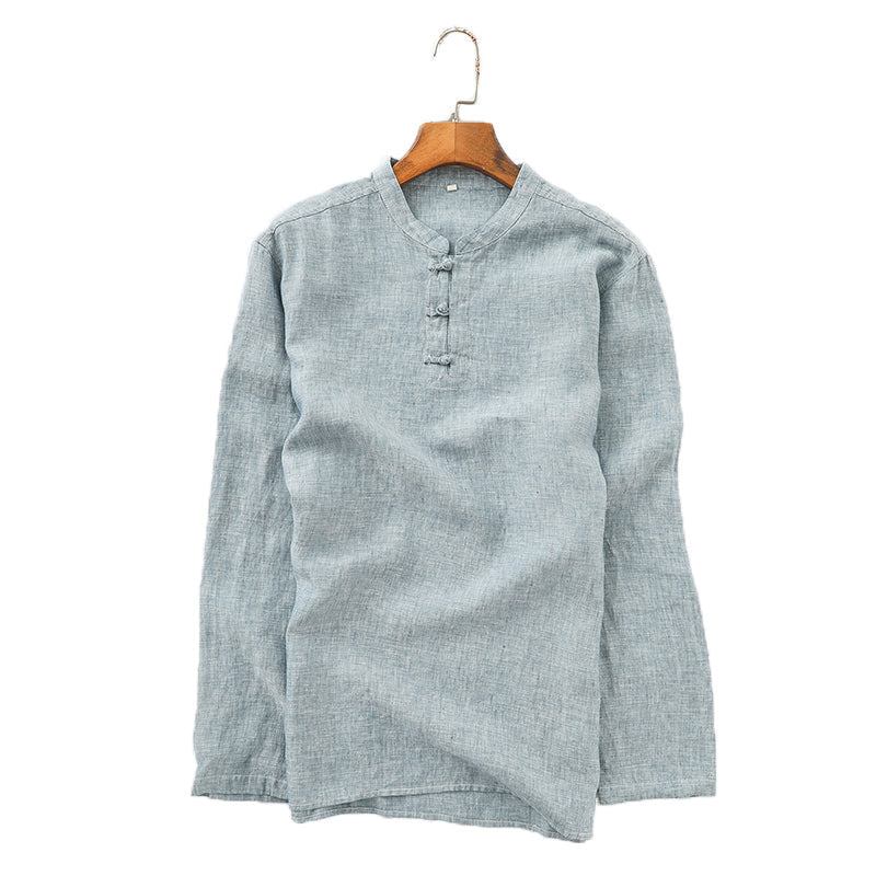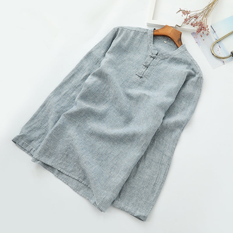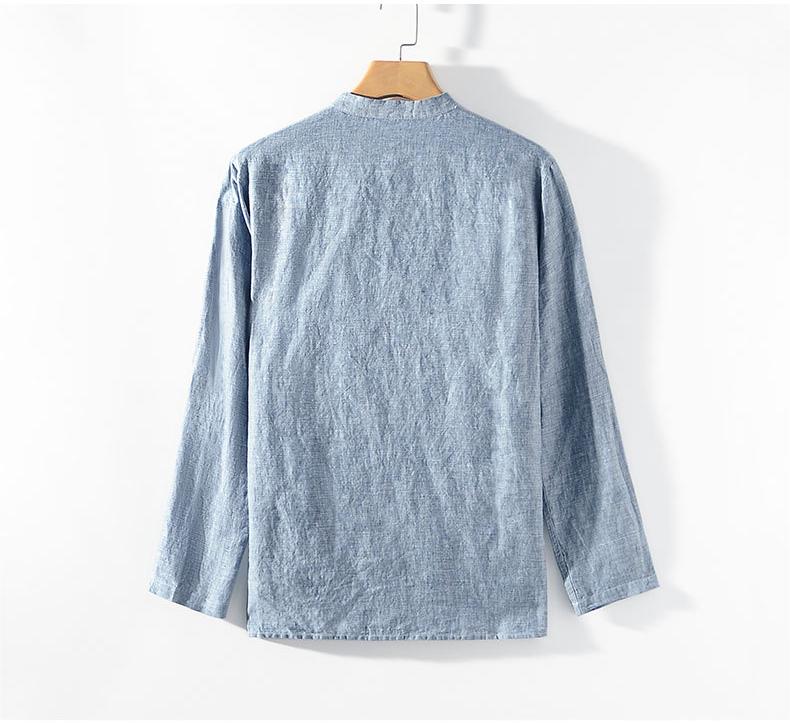 Men's 100% Linen Casual Button Henley Shirt B002