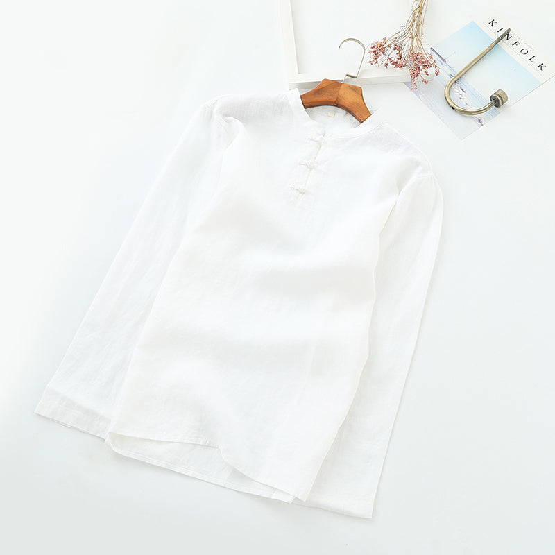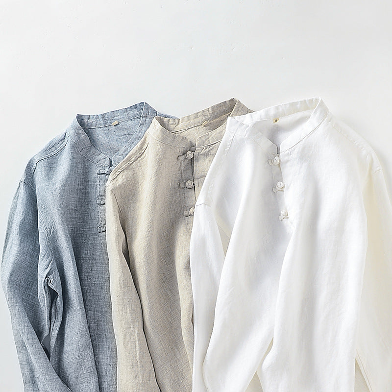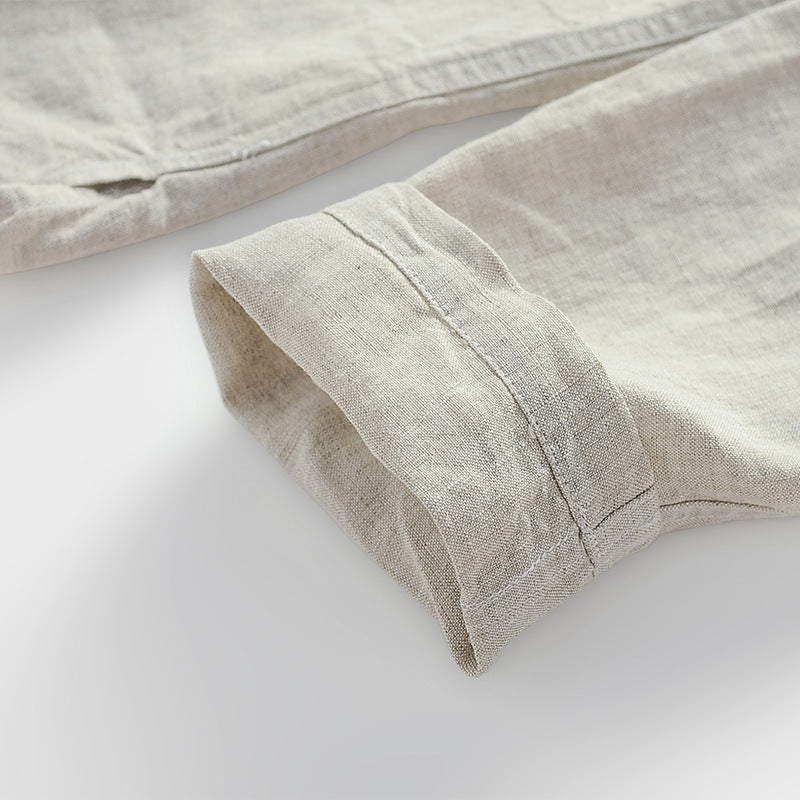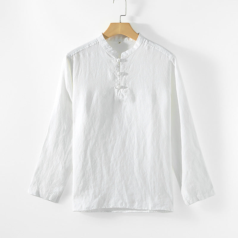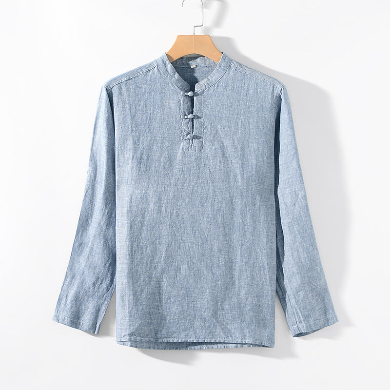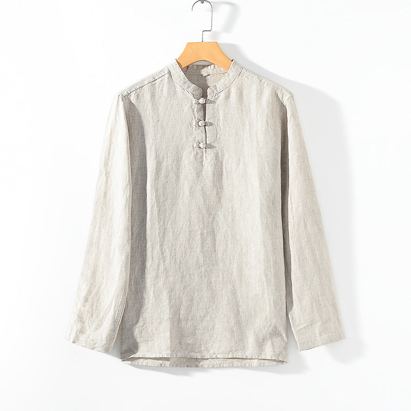 Men's 100% Linen Casual Button Henley Shirt B002
