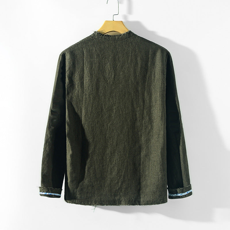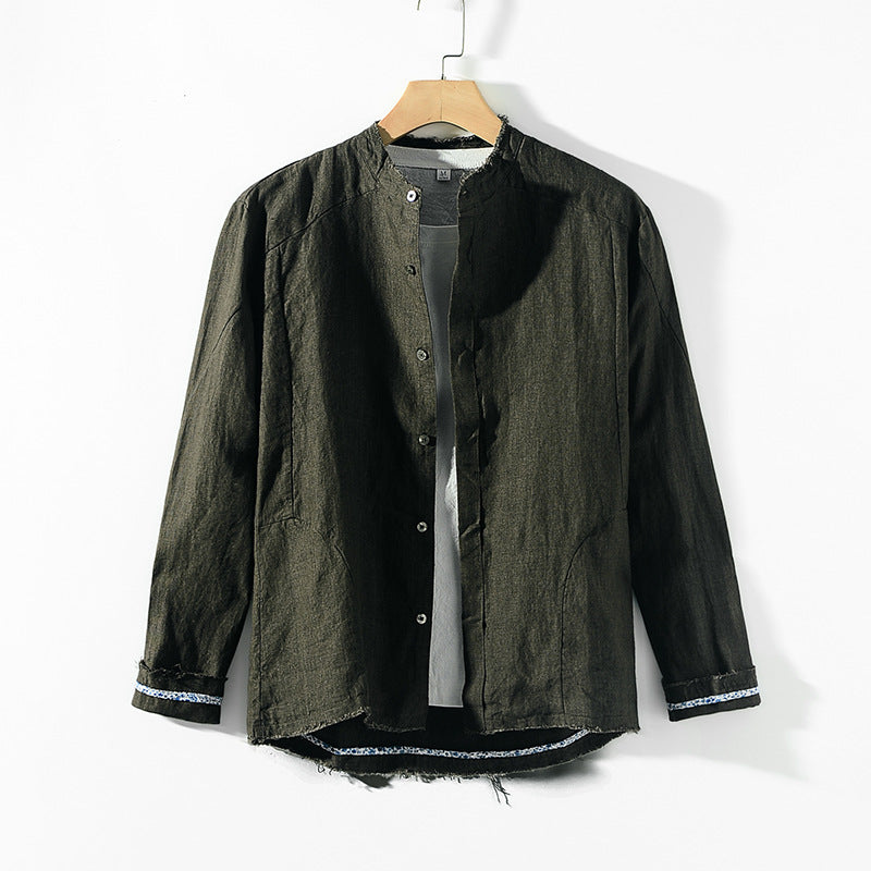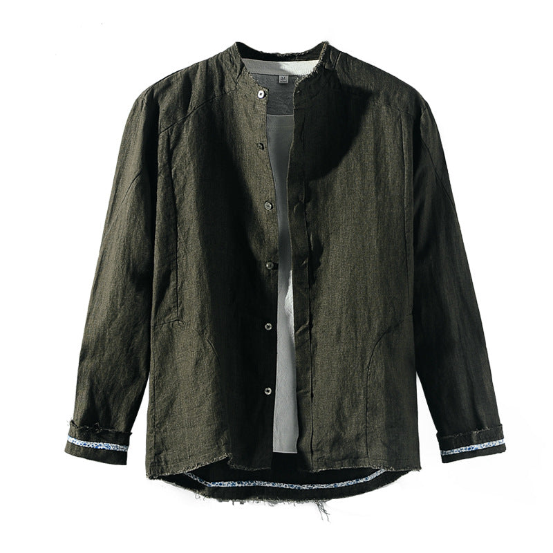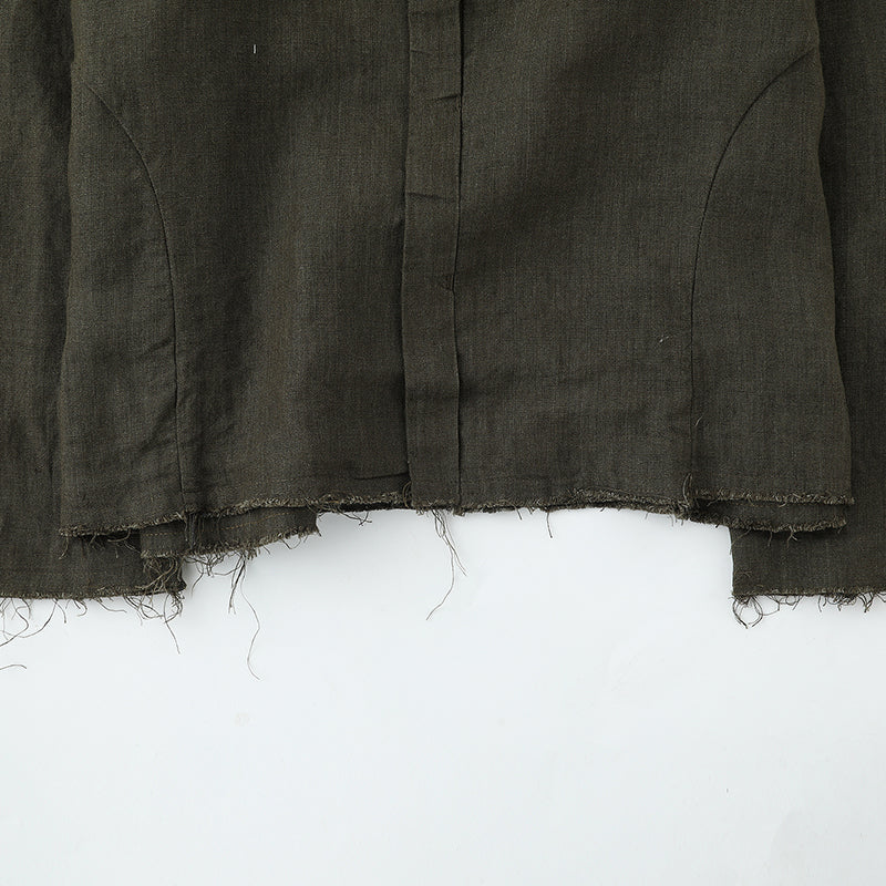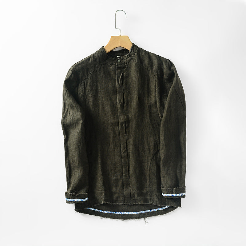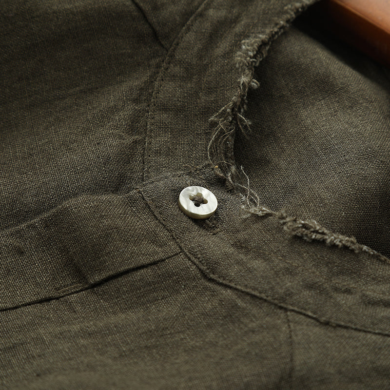 Men's 100% Linen Casual Shirt Raw-Hem Men Top B006