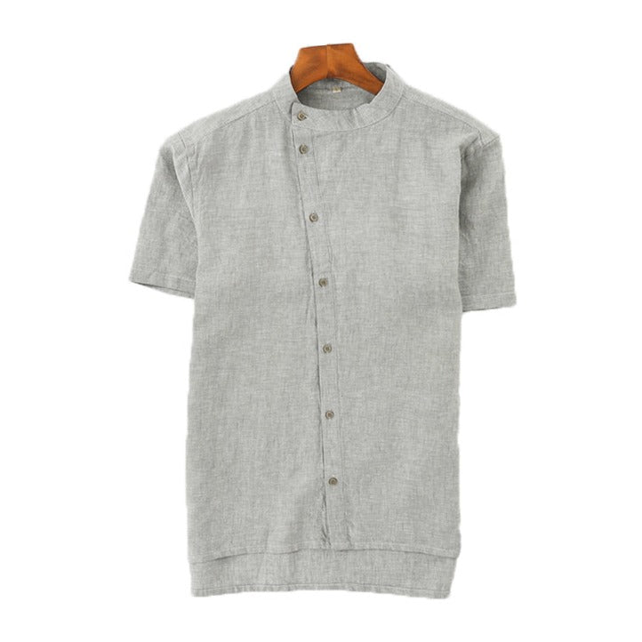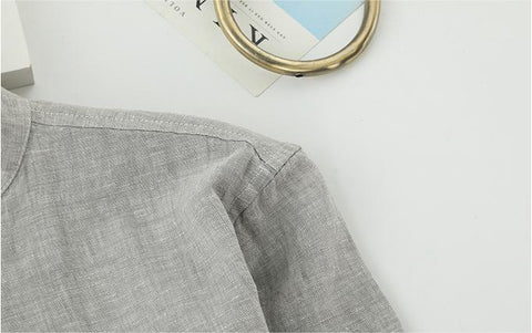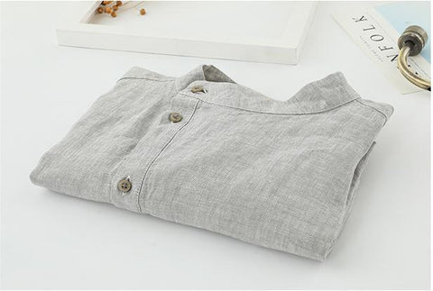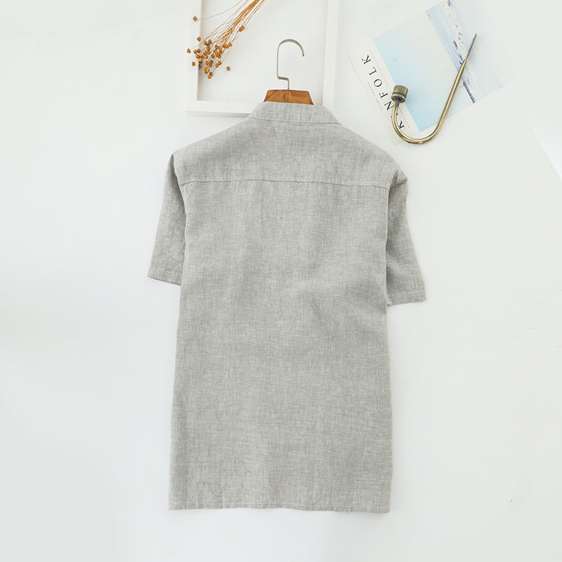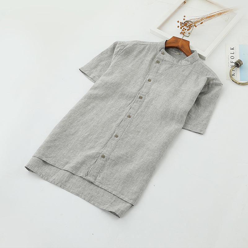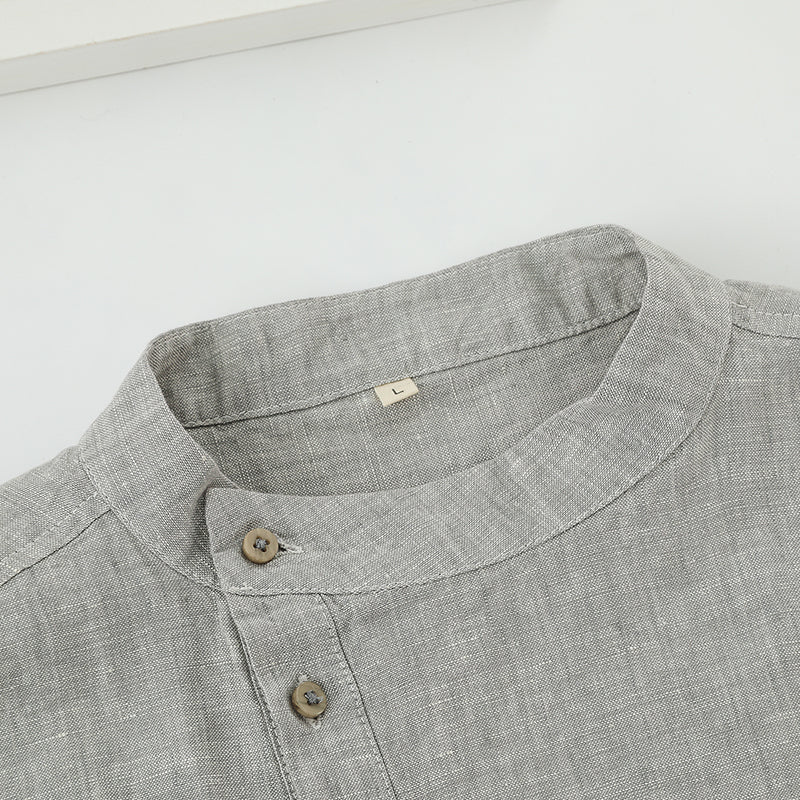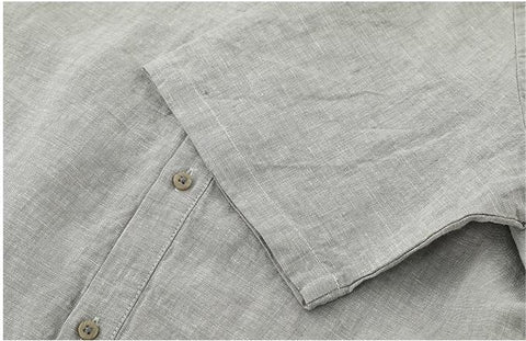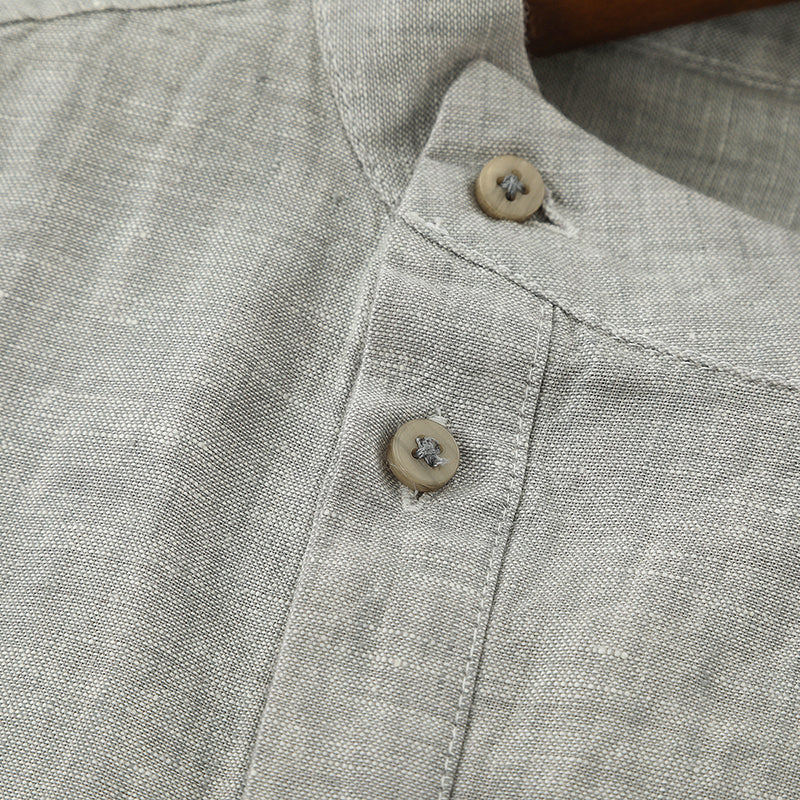 Men's 100% Linen O-neck Grey Button Shirt B034