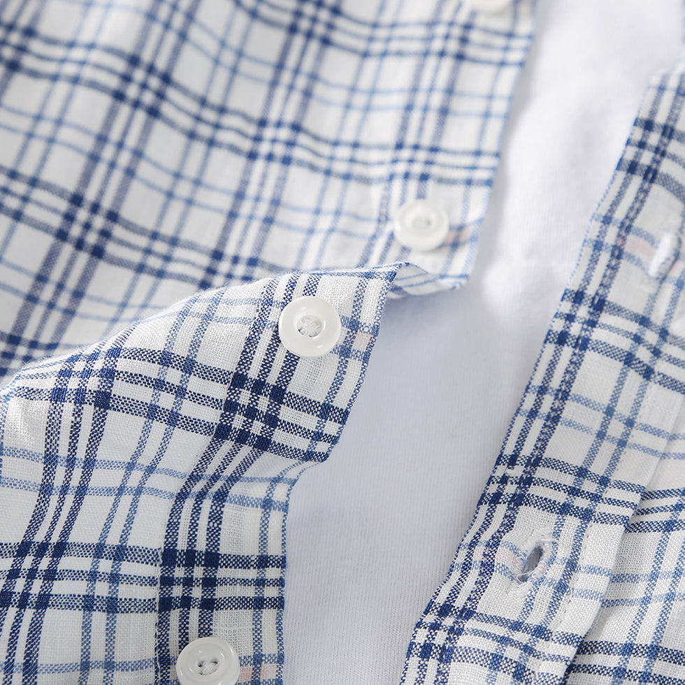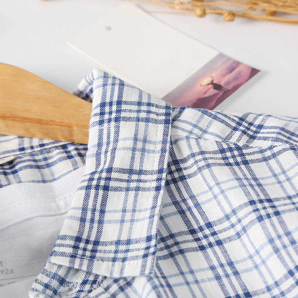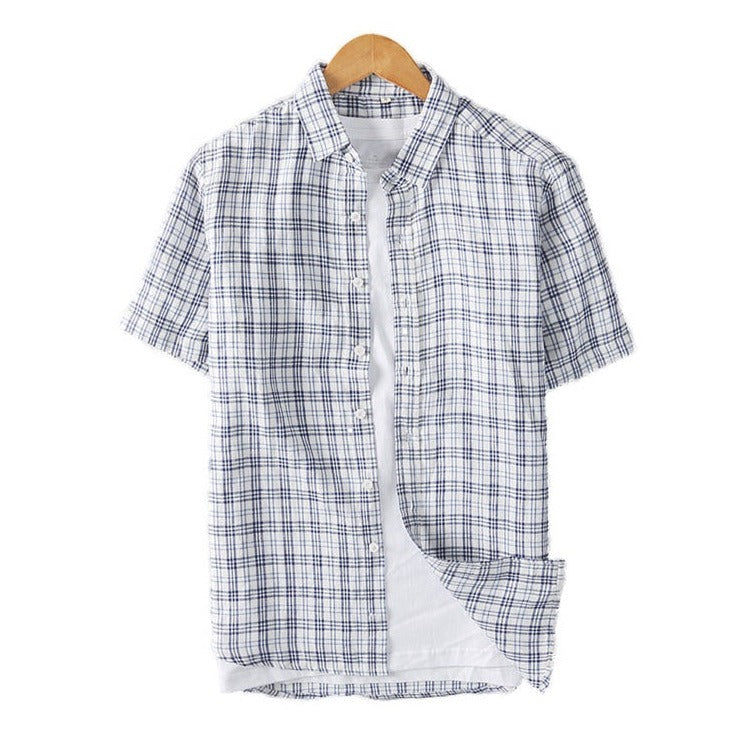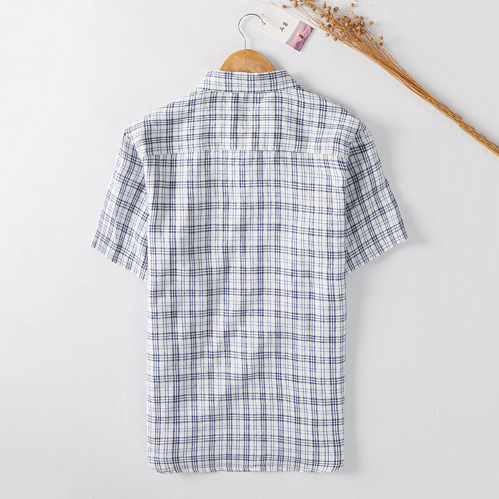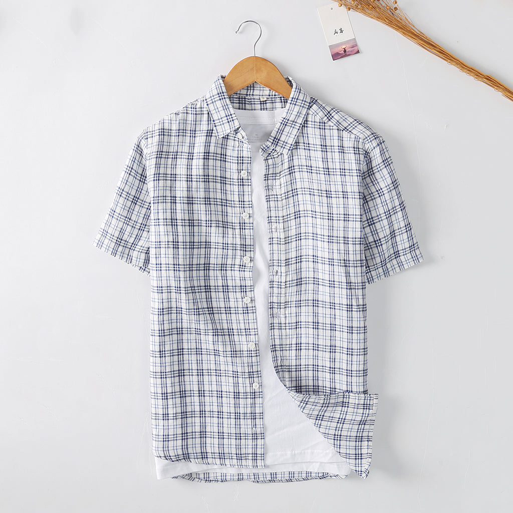 Men's 100% Linen Short Sleeve Plaid Shirt C048