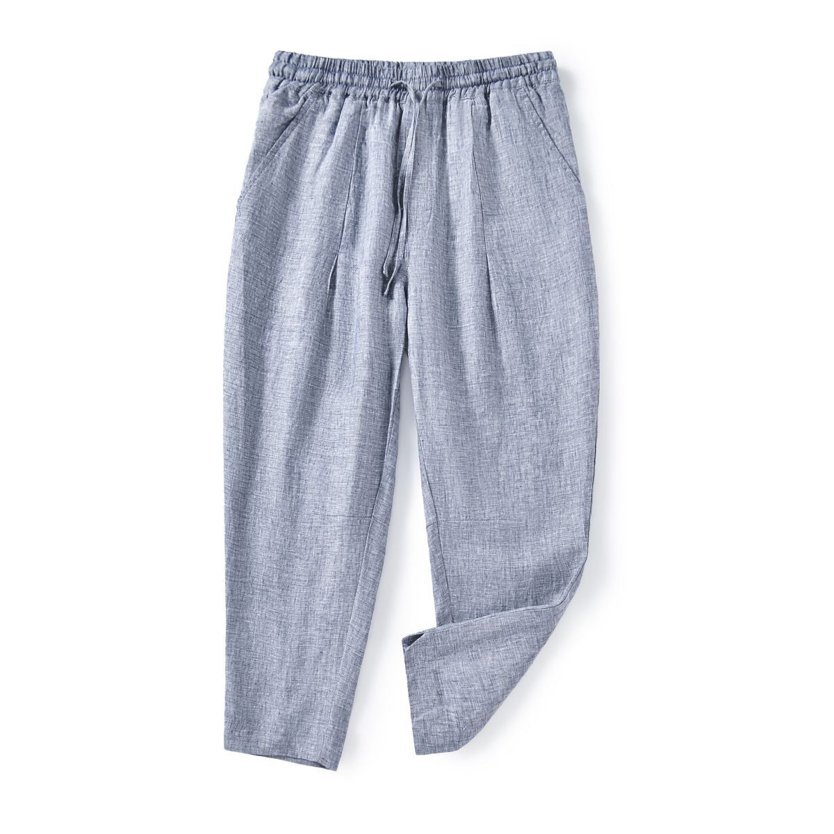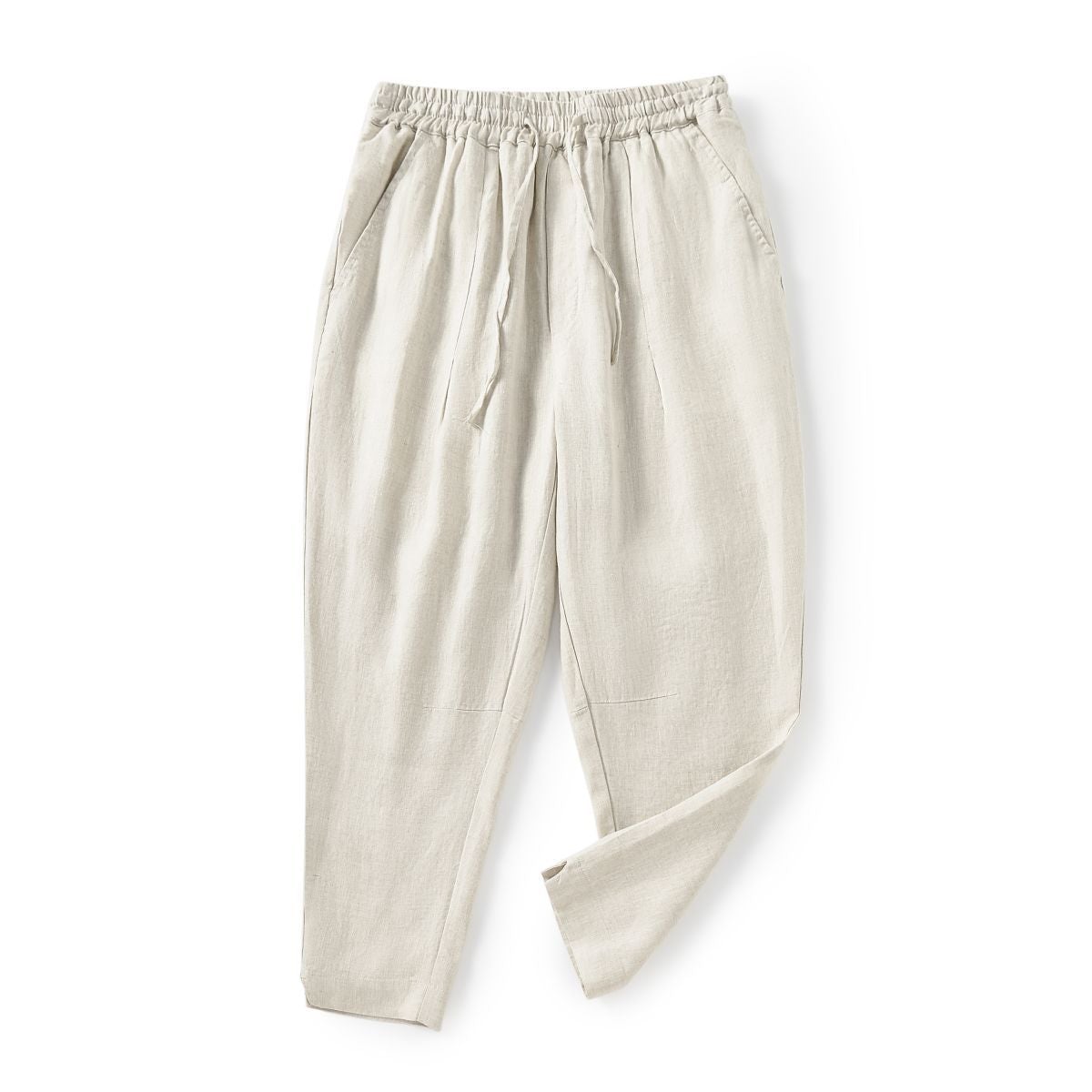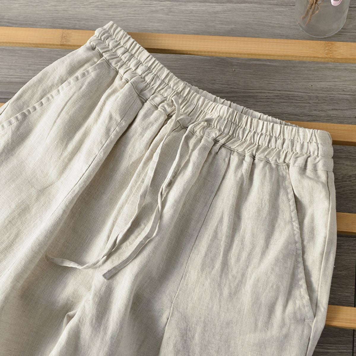 Men's 100% Linen Drawstring Pants Elastic Waist Casual Pants E006