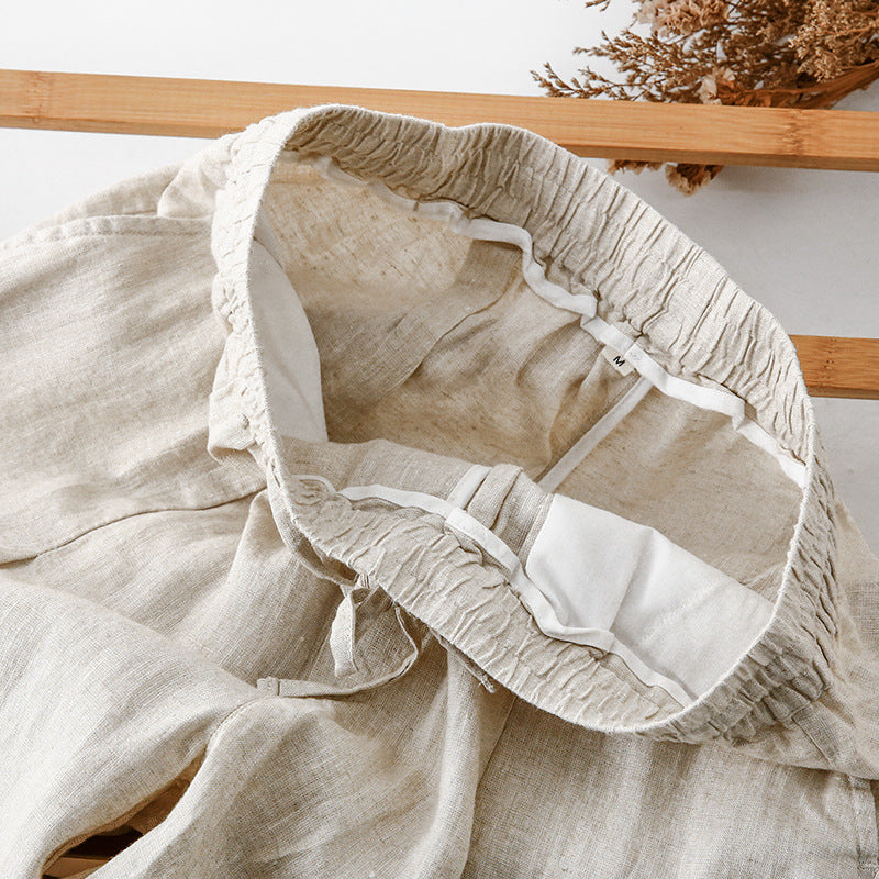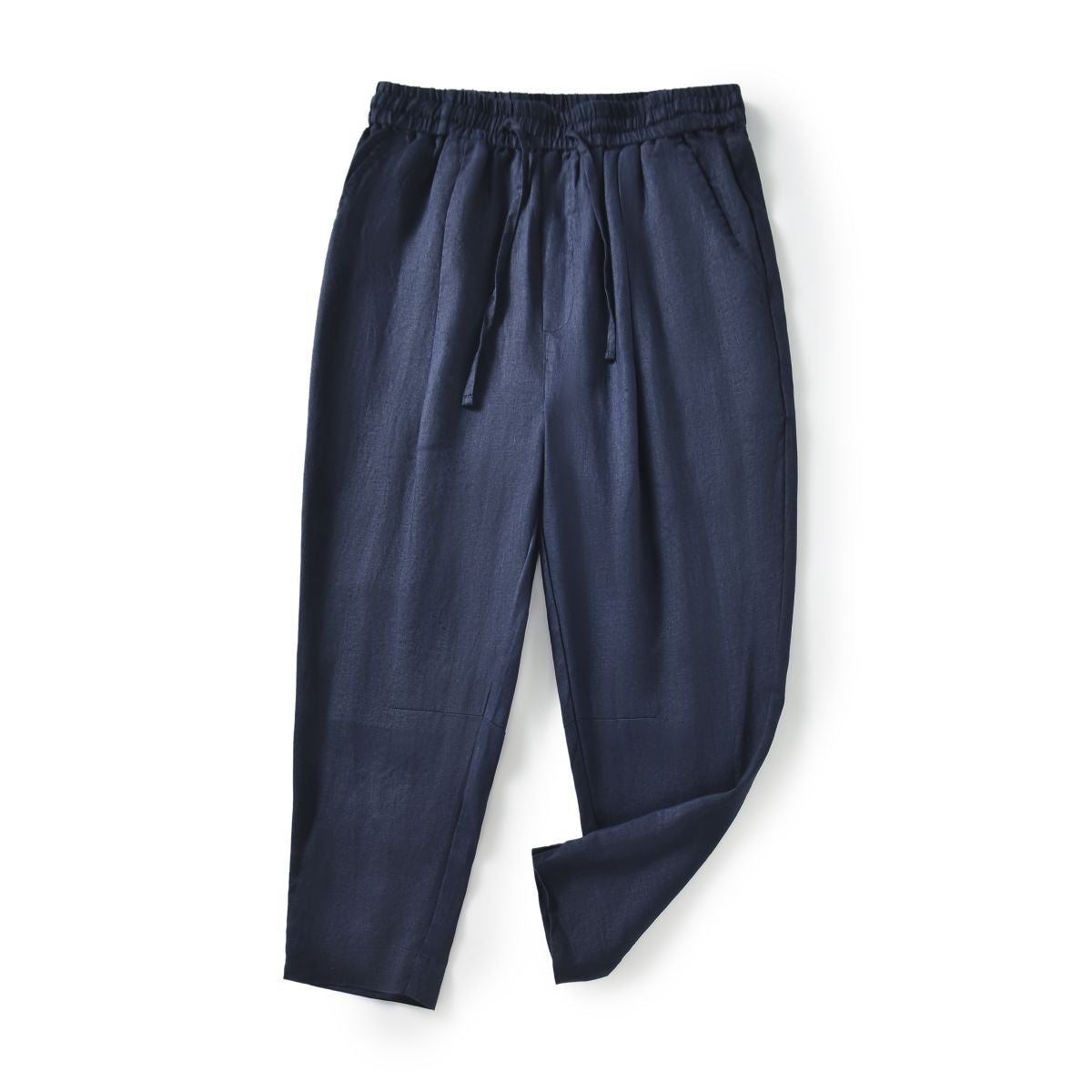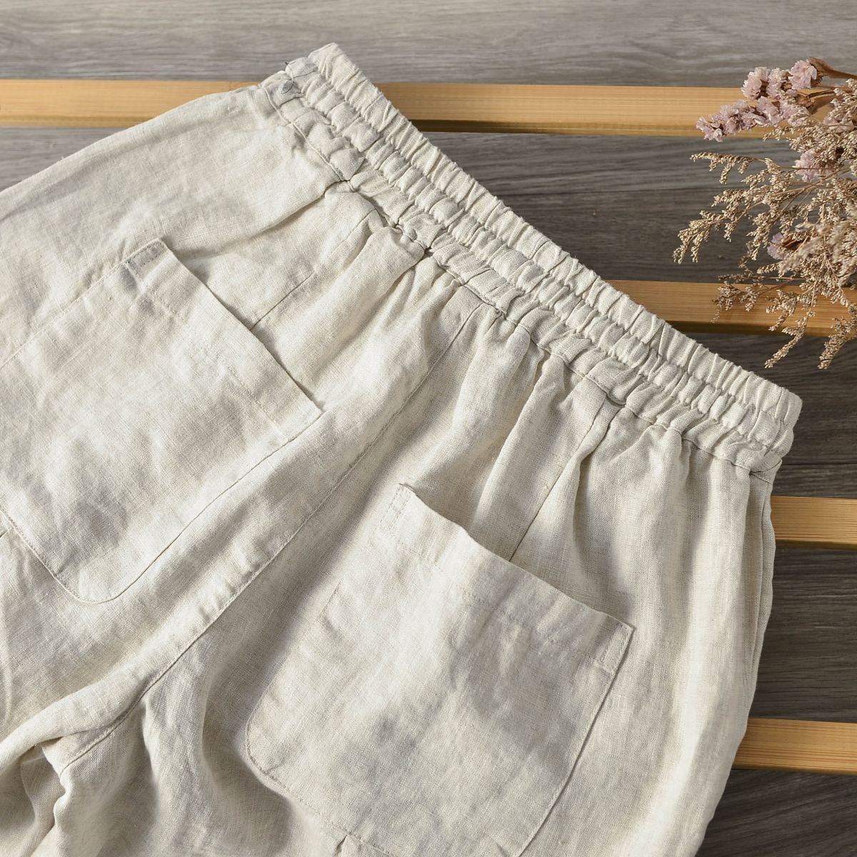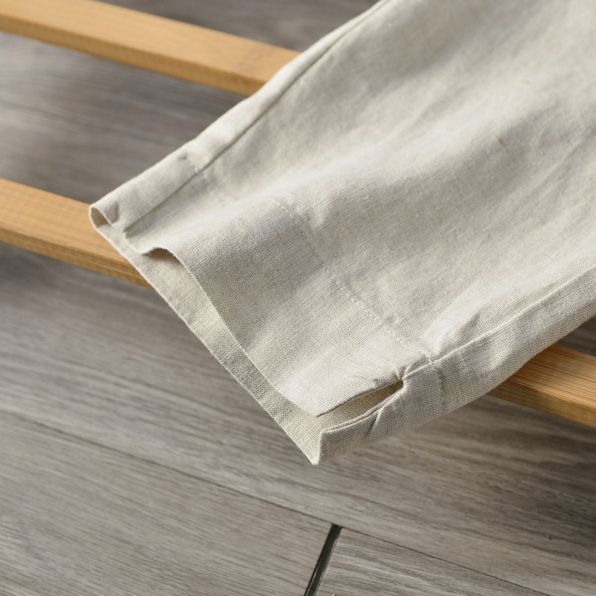 Men's 100% Linen Drawstring Pants Elastic Waist Casual Pants E006
