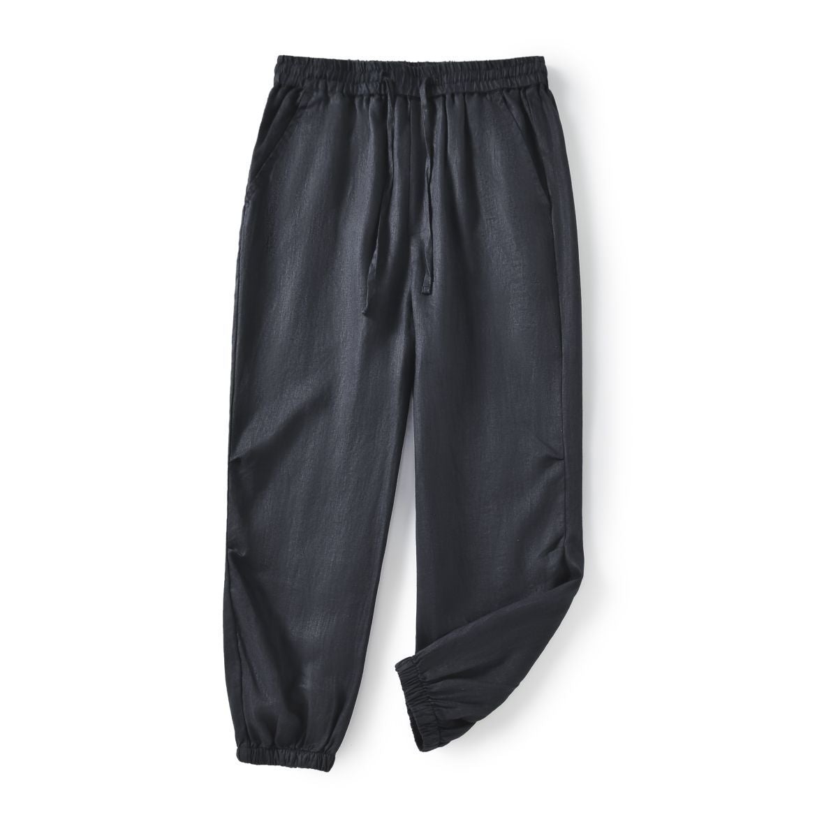 Men's 100% Linen Drawstring Elastic Waist Casual Pants with Elasticated feet E004