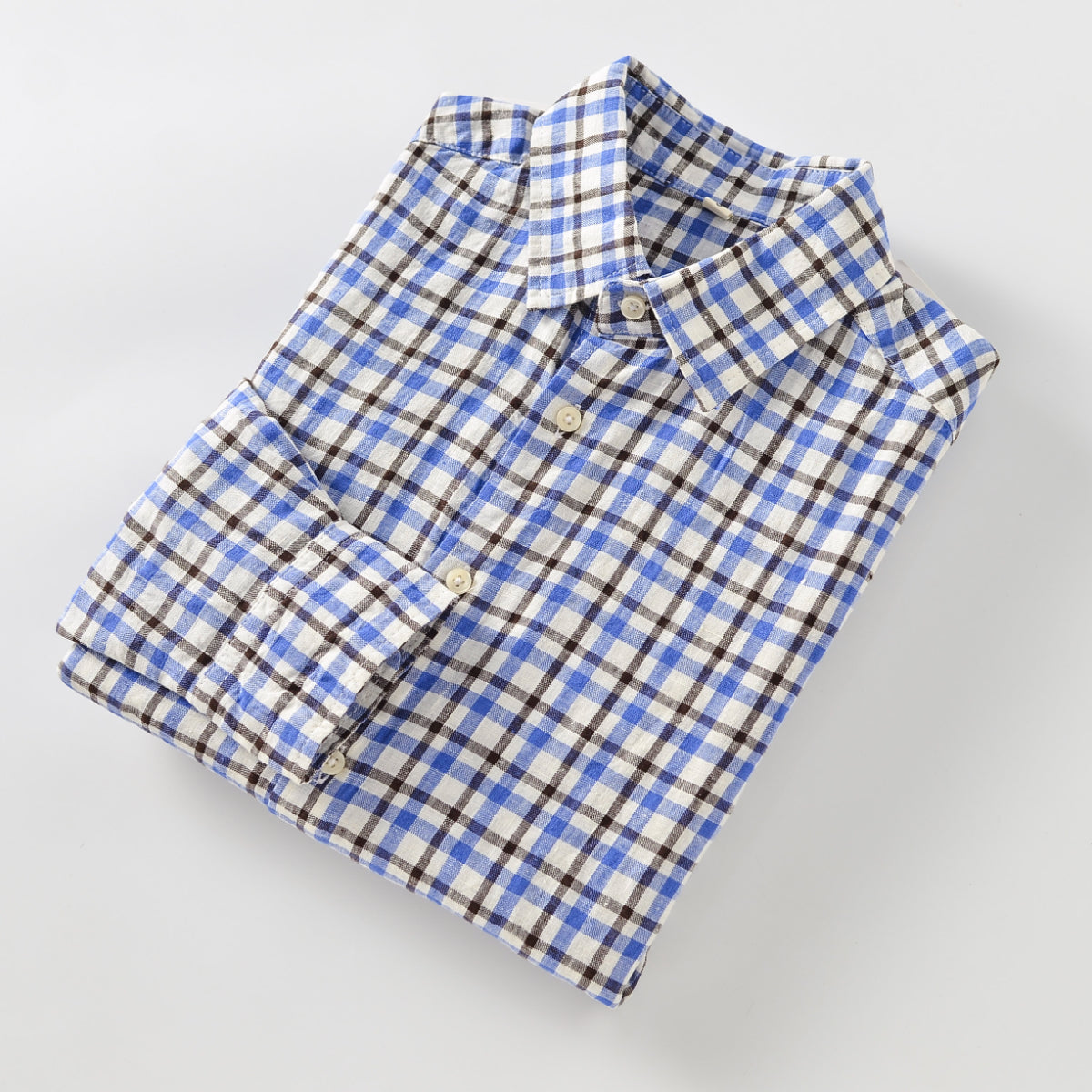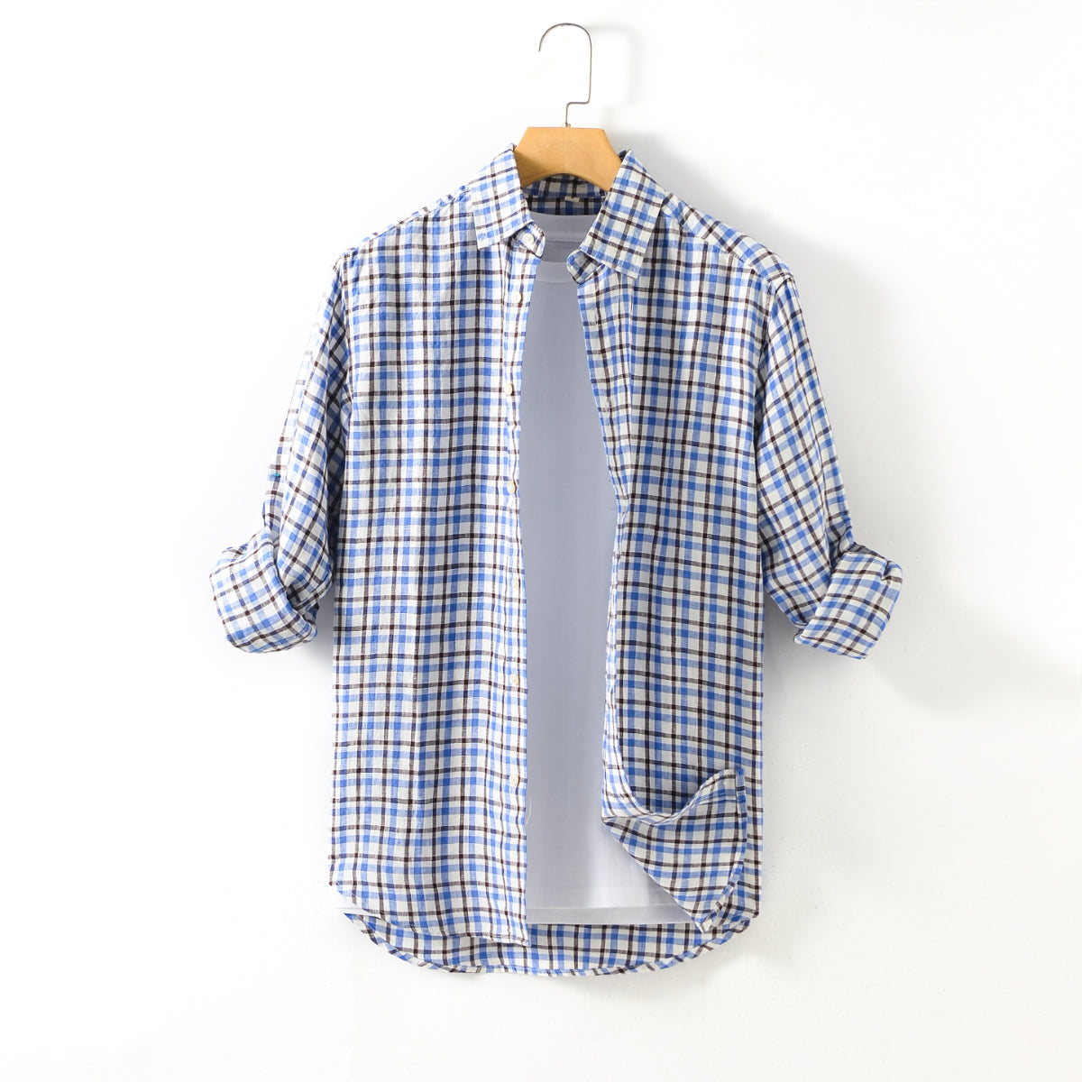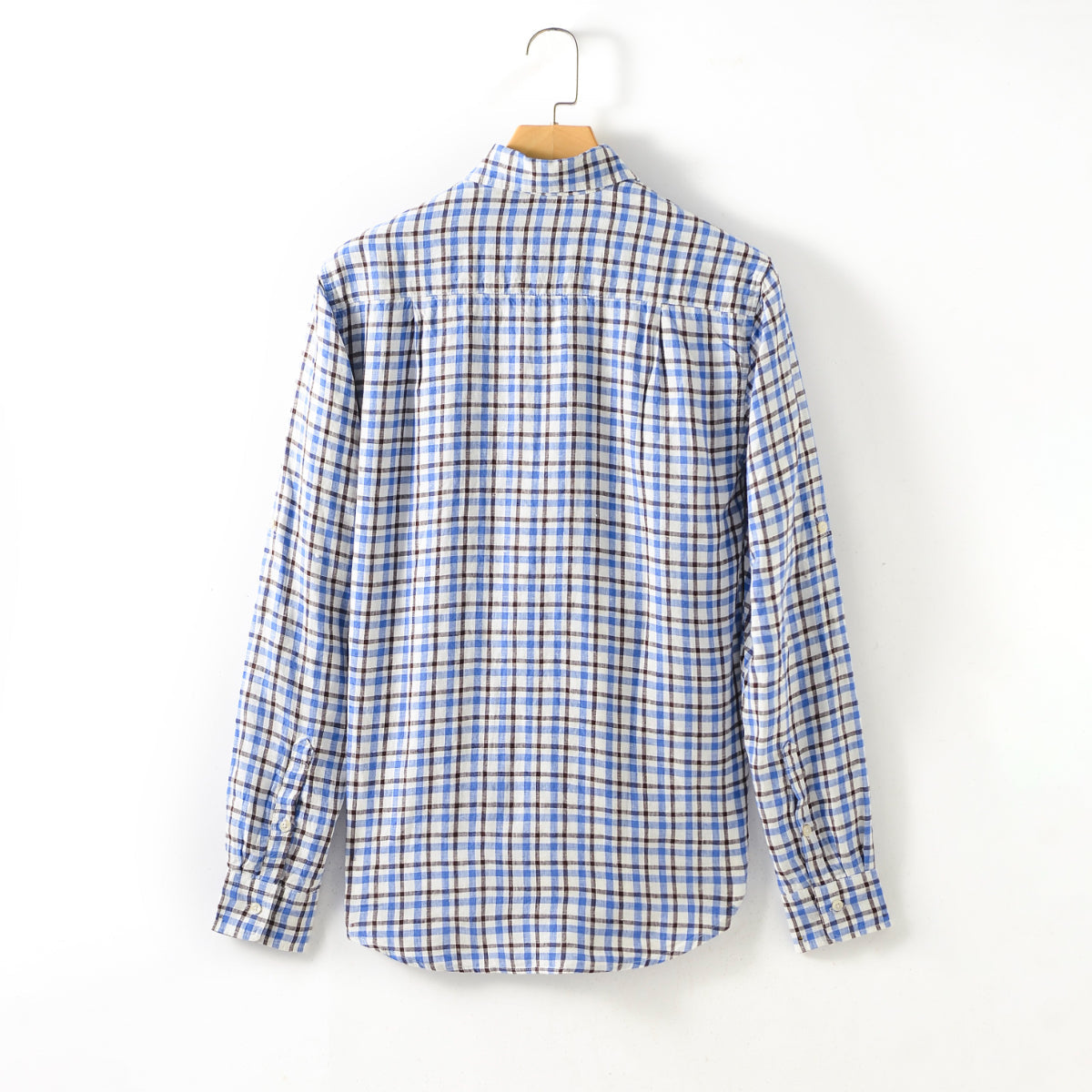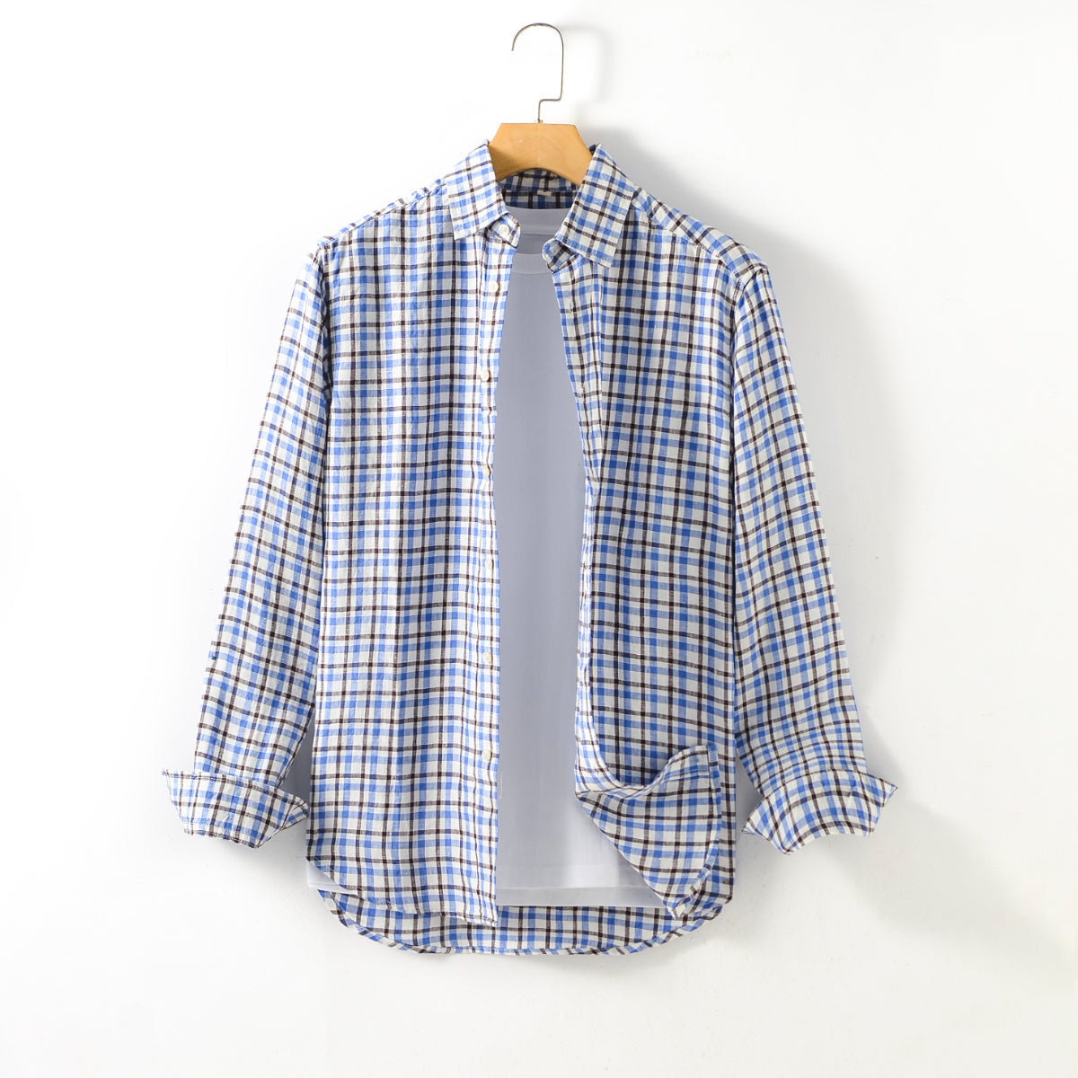 Men's 100% Linen long Sleeve casual checked shirt E019