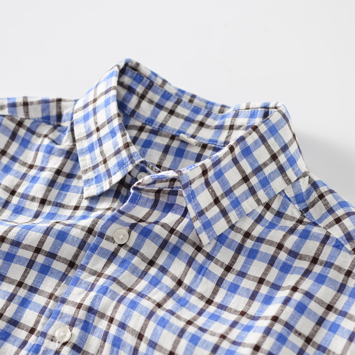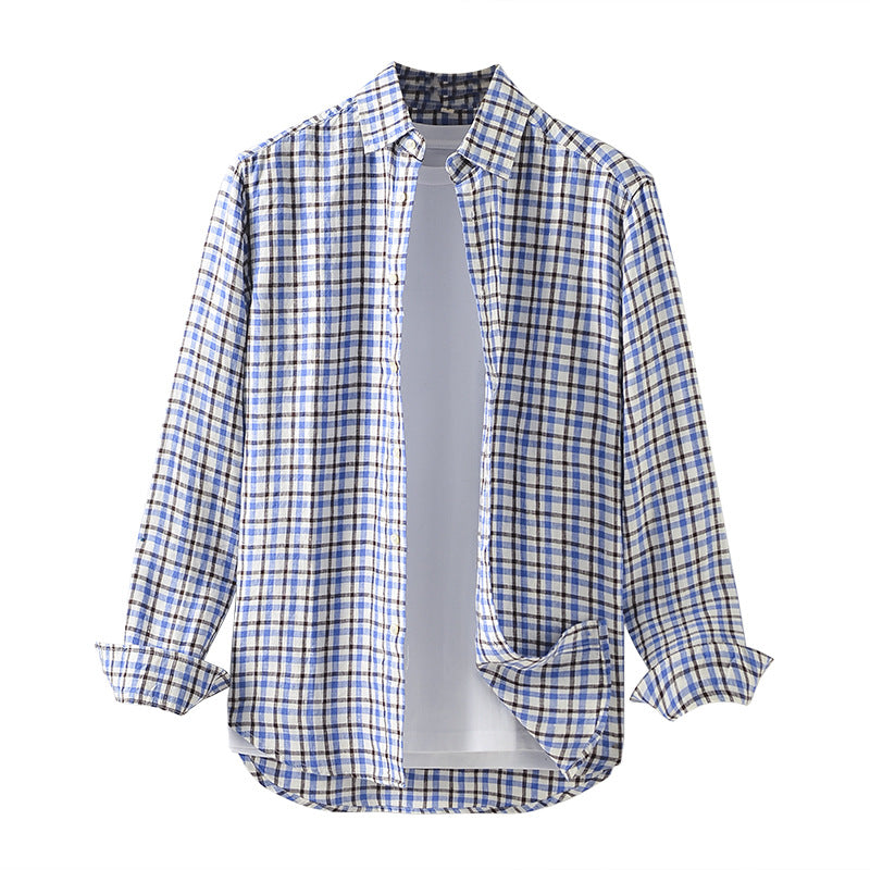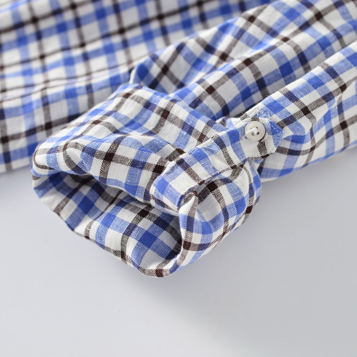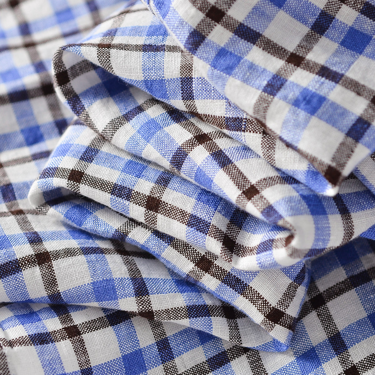 Men's 100% Linen long Sleeve casual checked shirt E019
