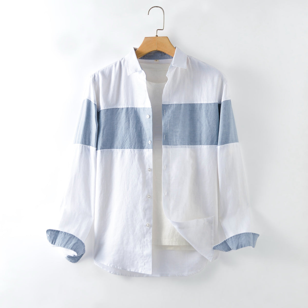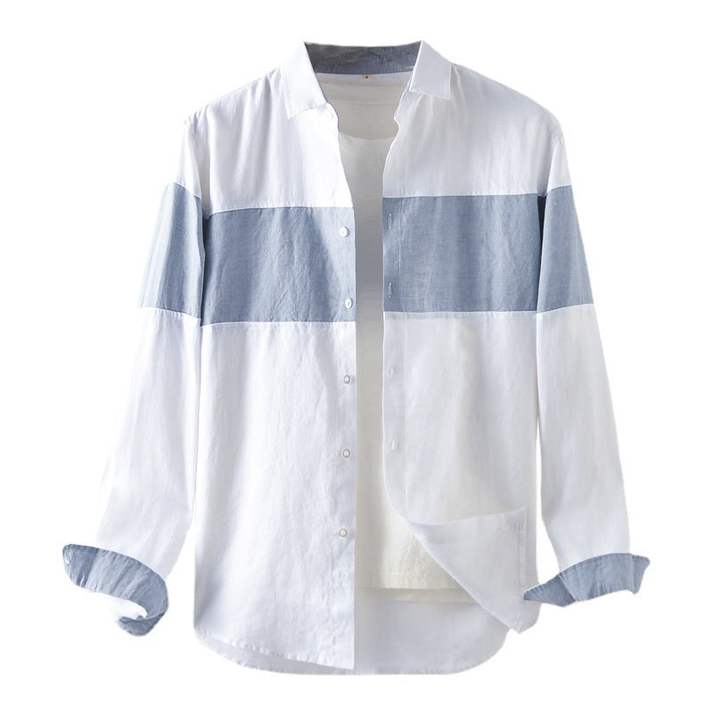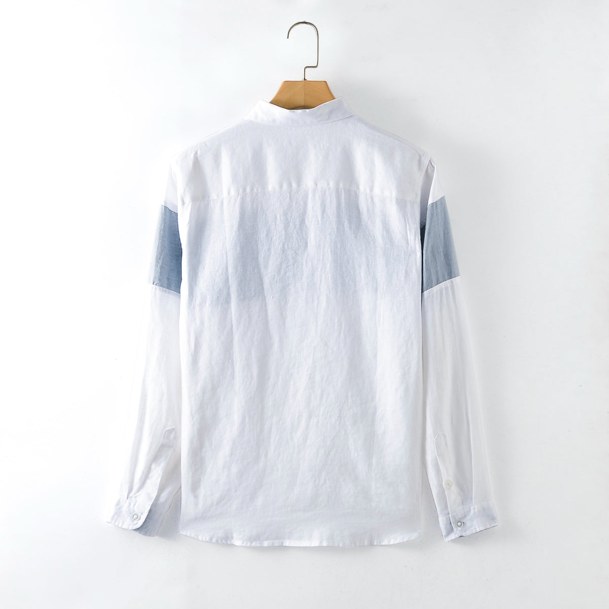 Men's 100% Linen long Sleeve casual Splicing shirt E018