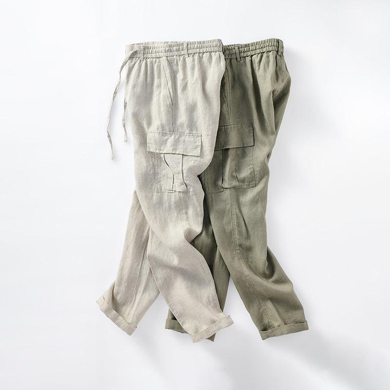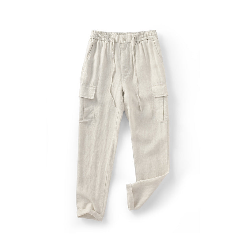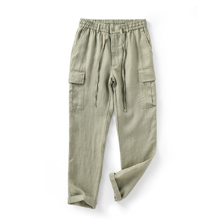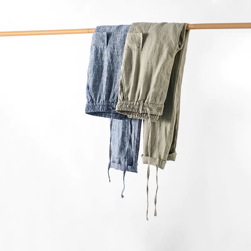 Men's 100% Linen Elastic Waist Drawstring Pants D040