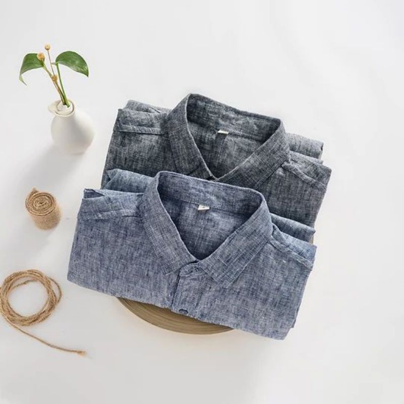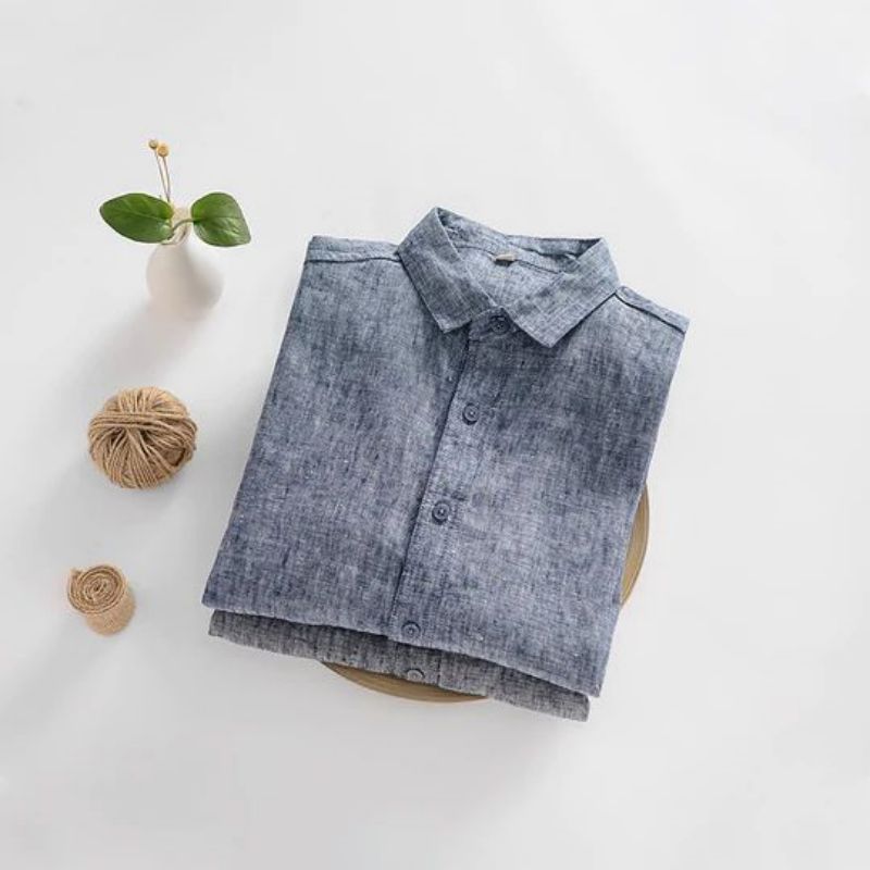 Men's Long Sleeve Button Closure 100% Linen Shirts D027