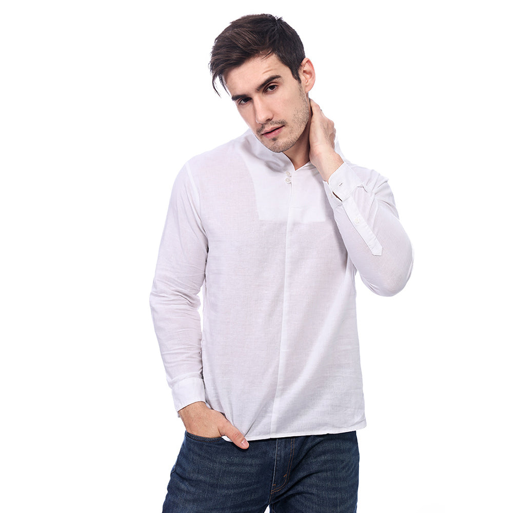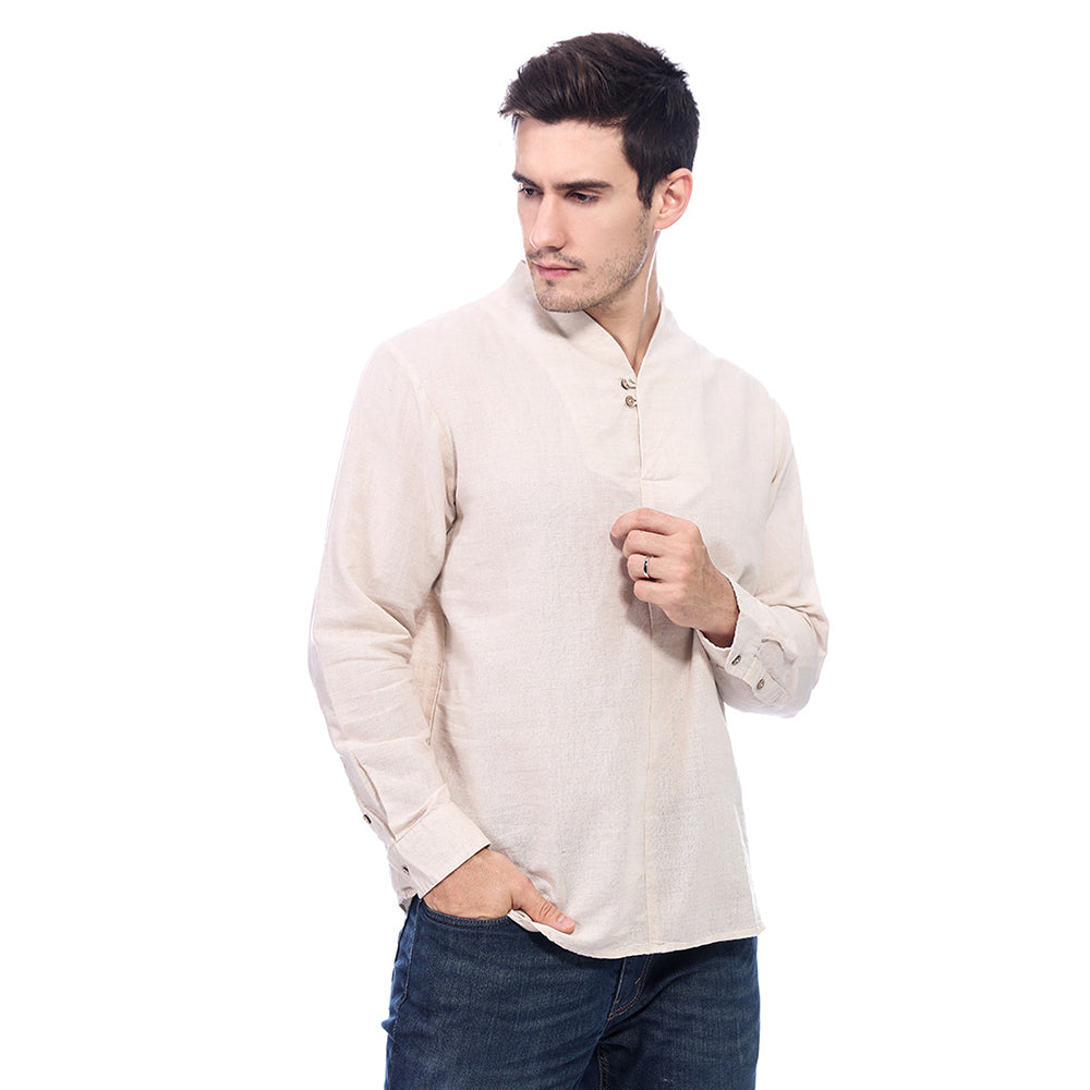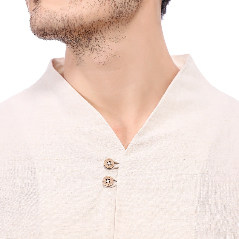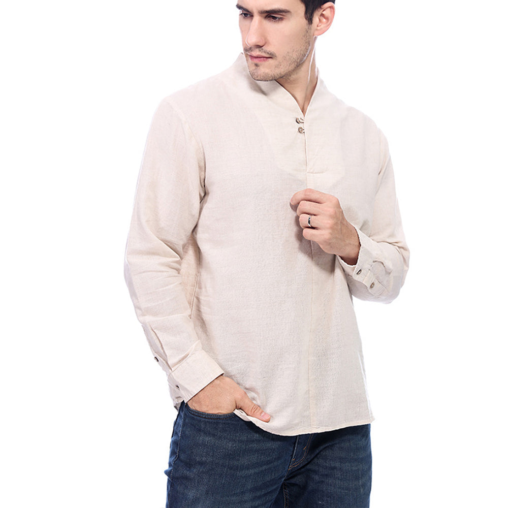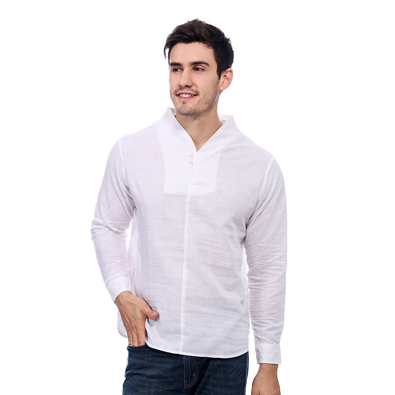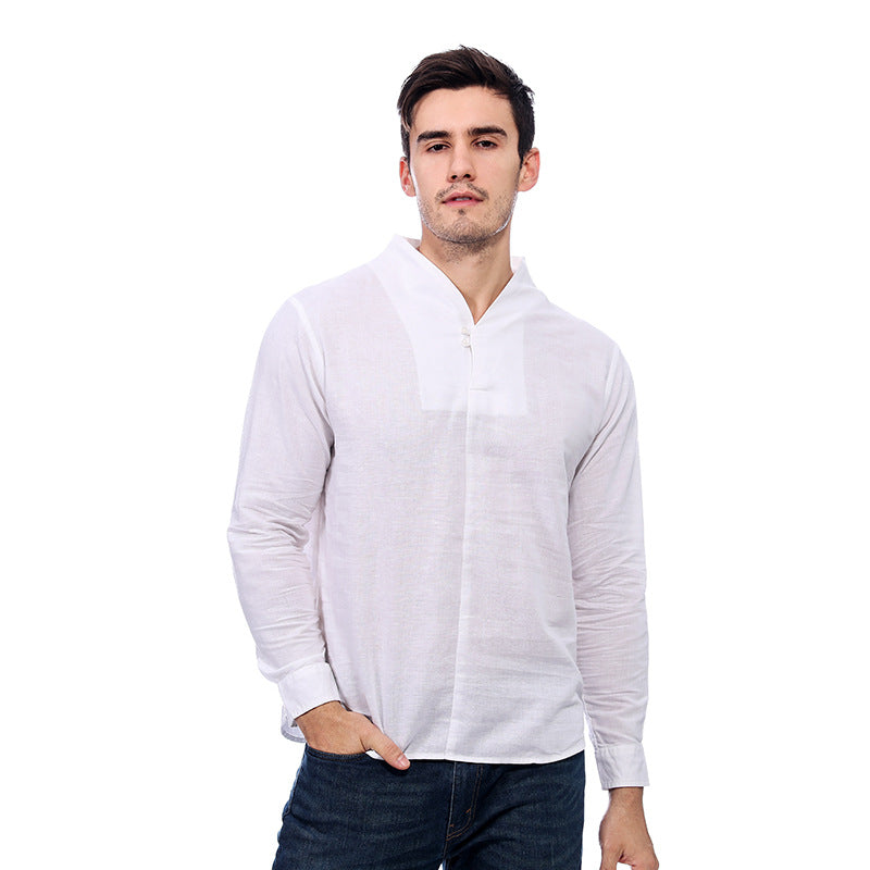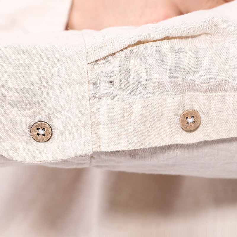 Men's Casual Long-Sleeved Retro Solid Color Cotton And Linen Shirt A010