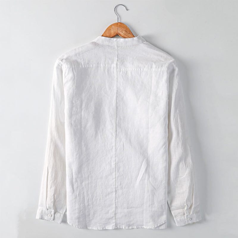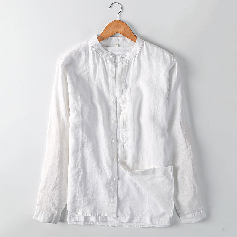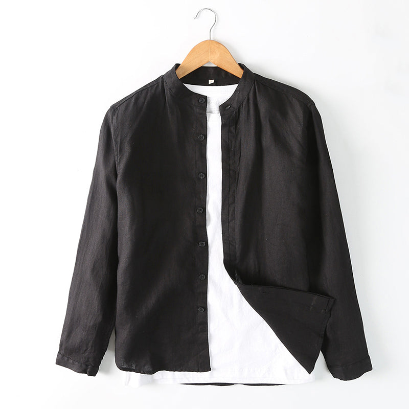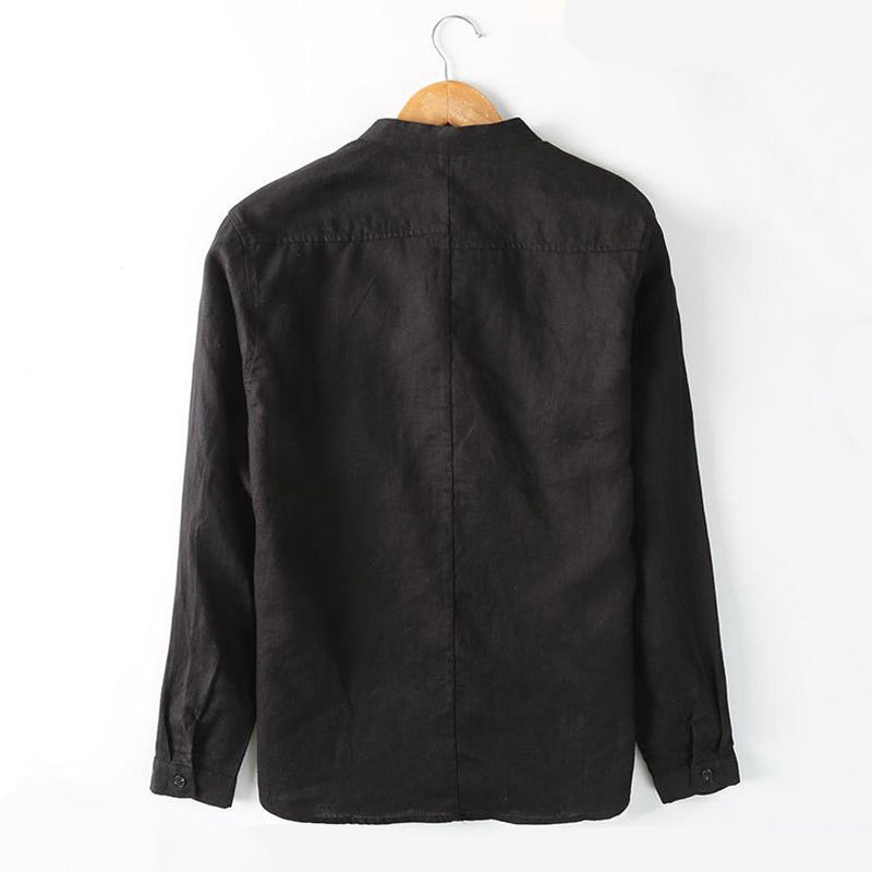 Men's Linen Breathable Casual Stand Collar Long Sleeve Shirt C024