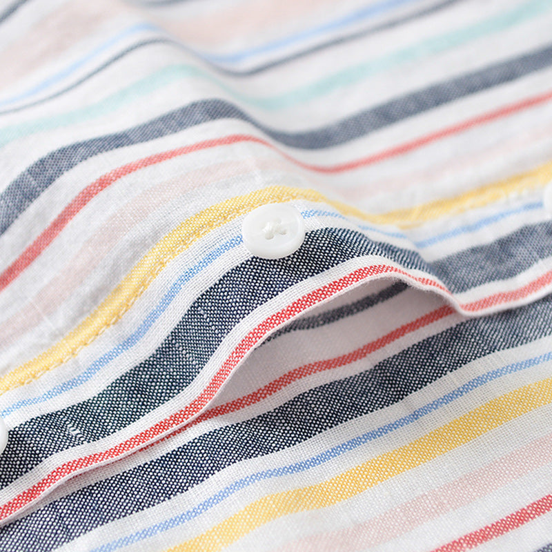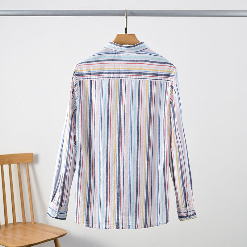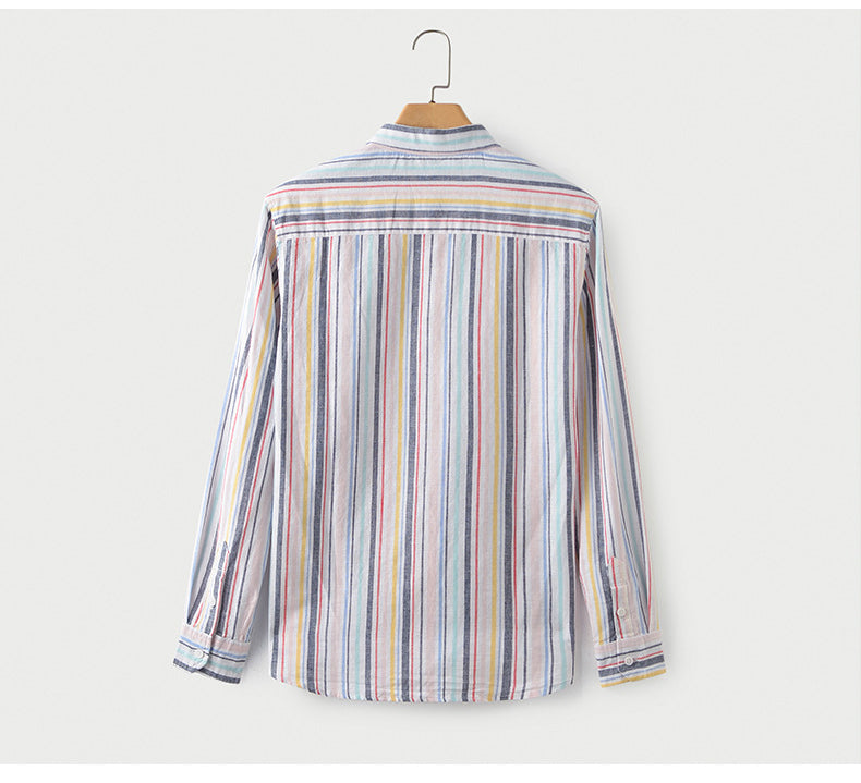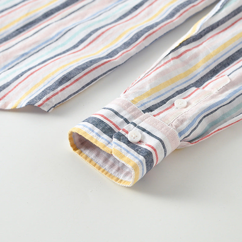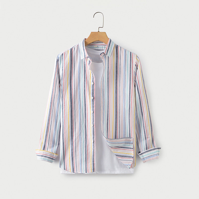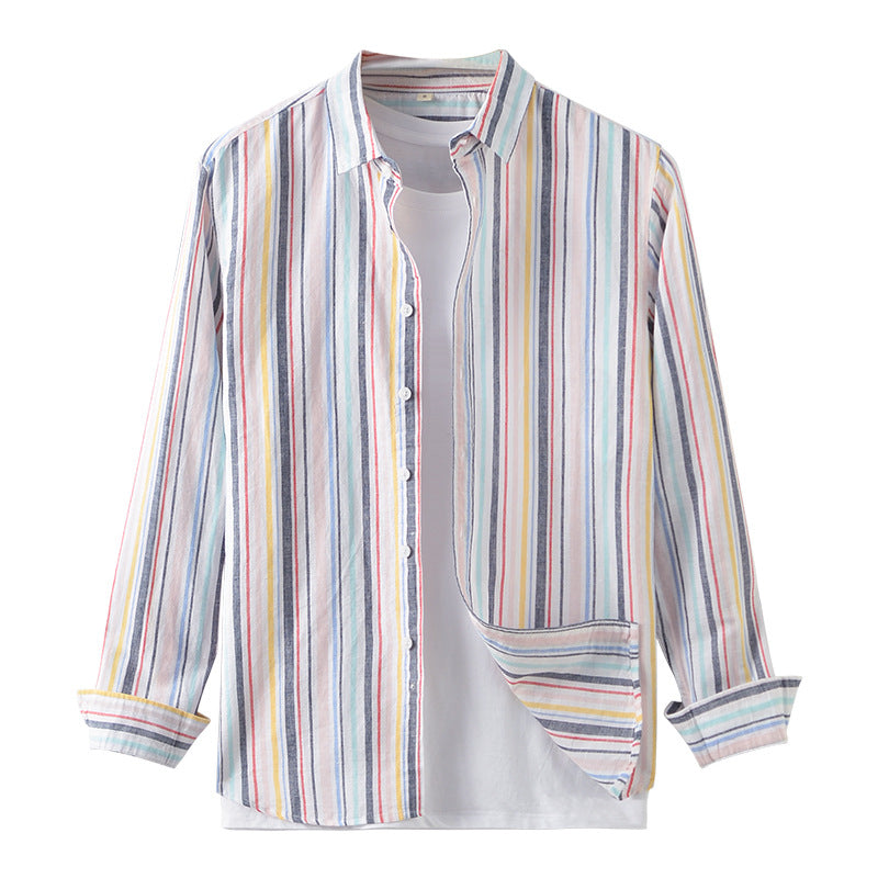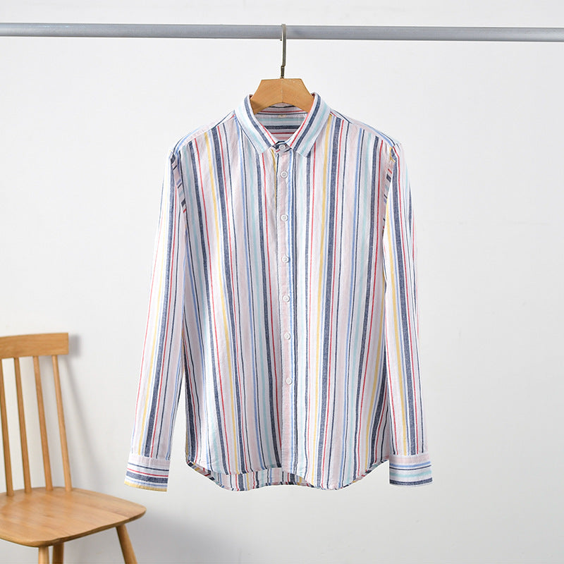 Men's Linen Casual Loose Striped Long Sleeve Shirt C059