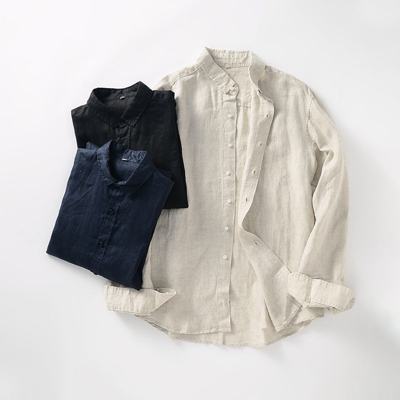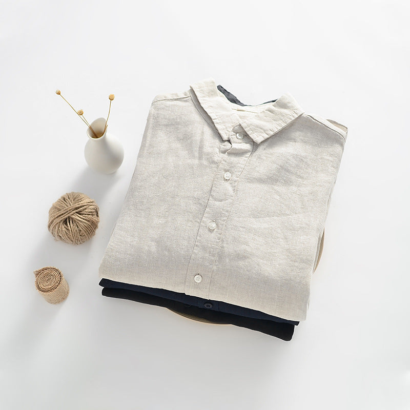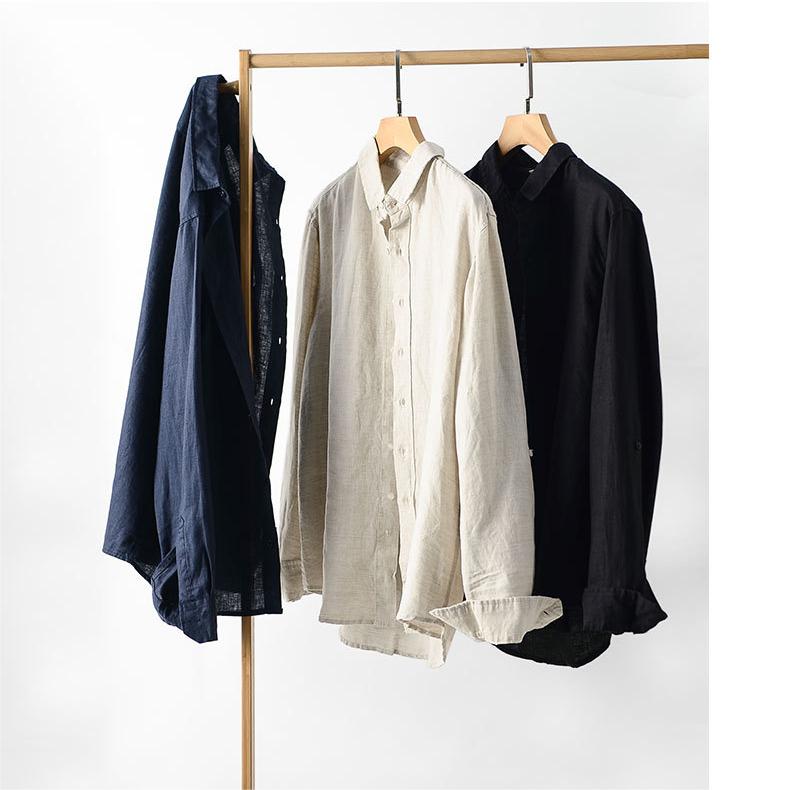 Men's Linen Casual Shirt Lapel Long Sleeve Cardigan 104