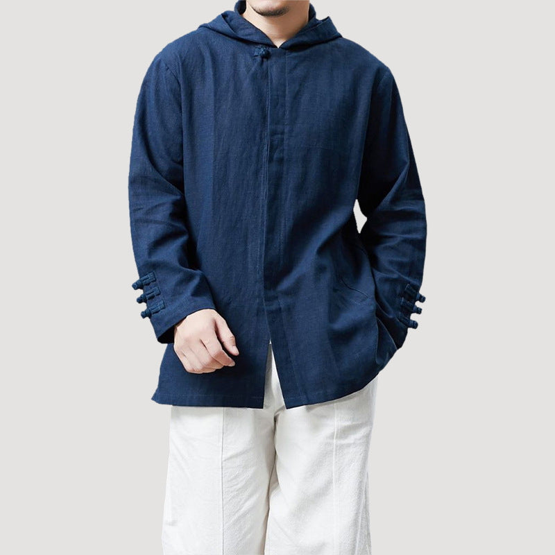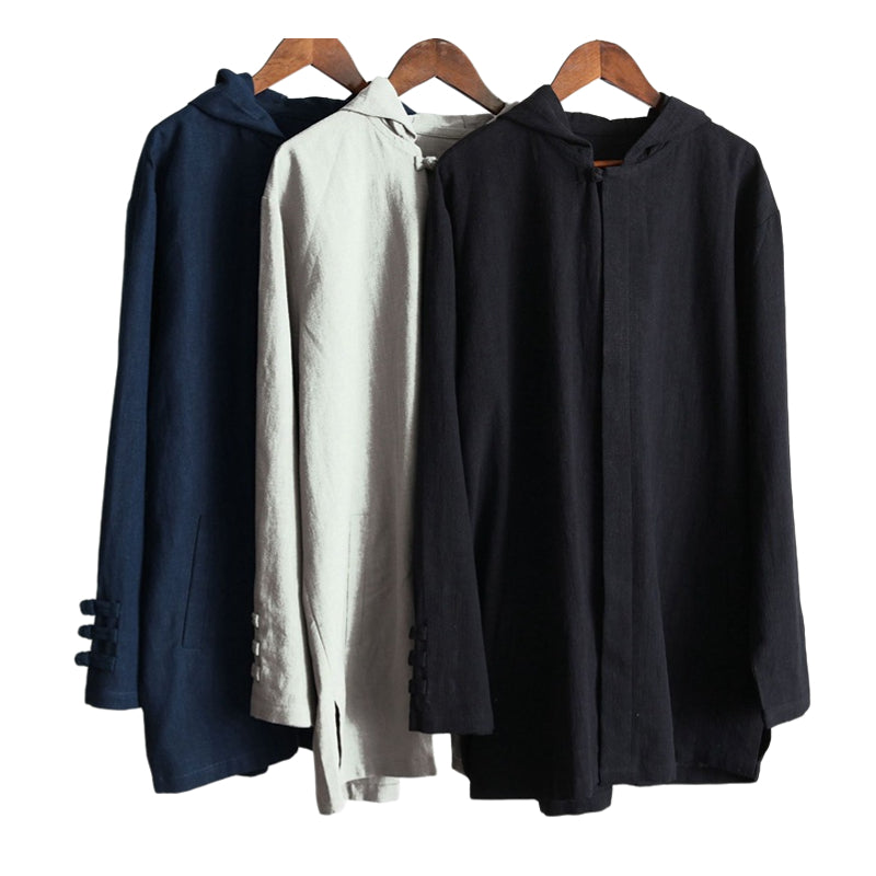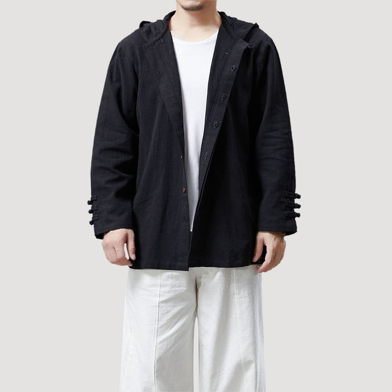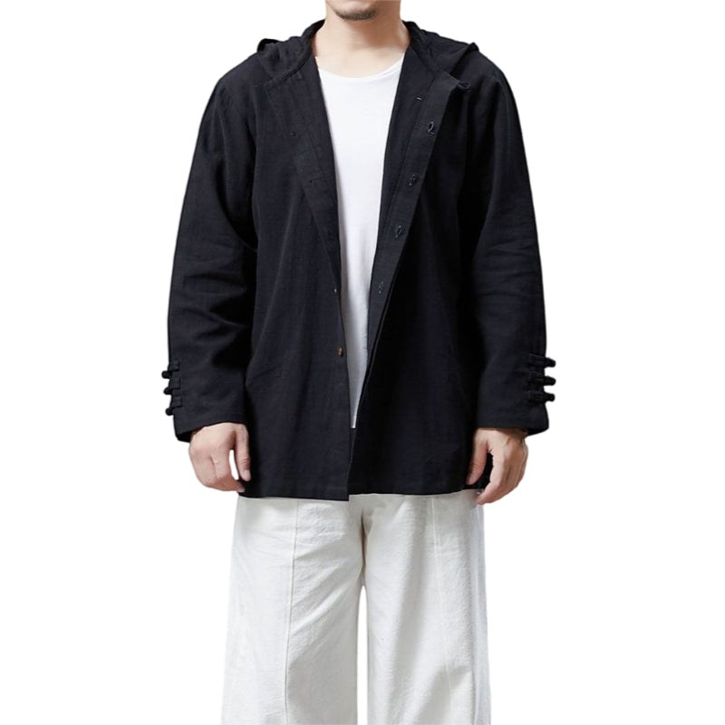 Men's Linen Jacket Casual Retro Men's Hooded Cardigan Top M004