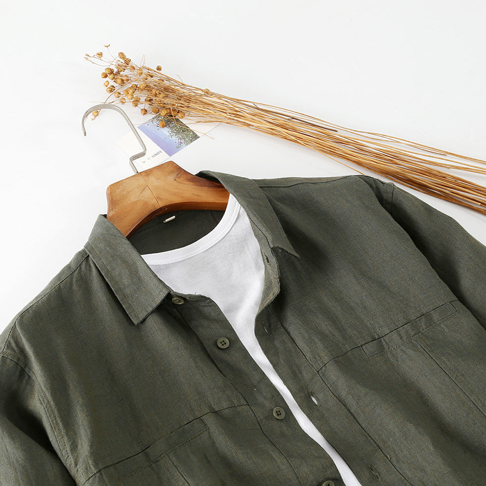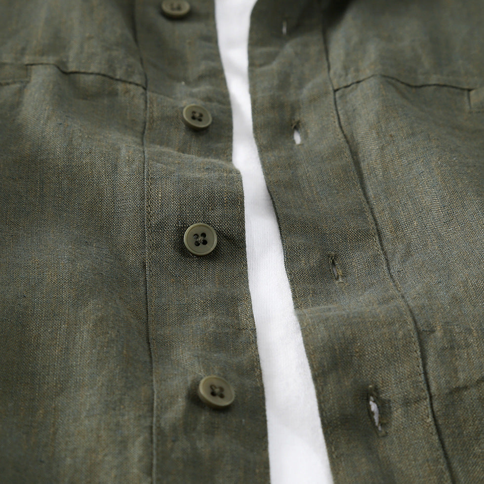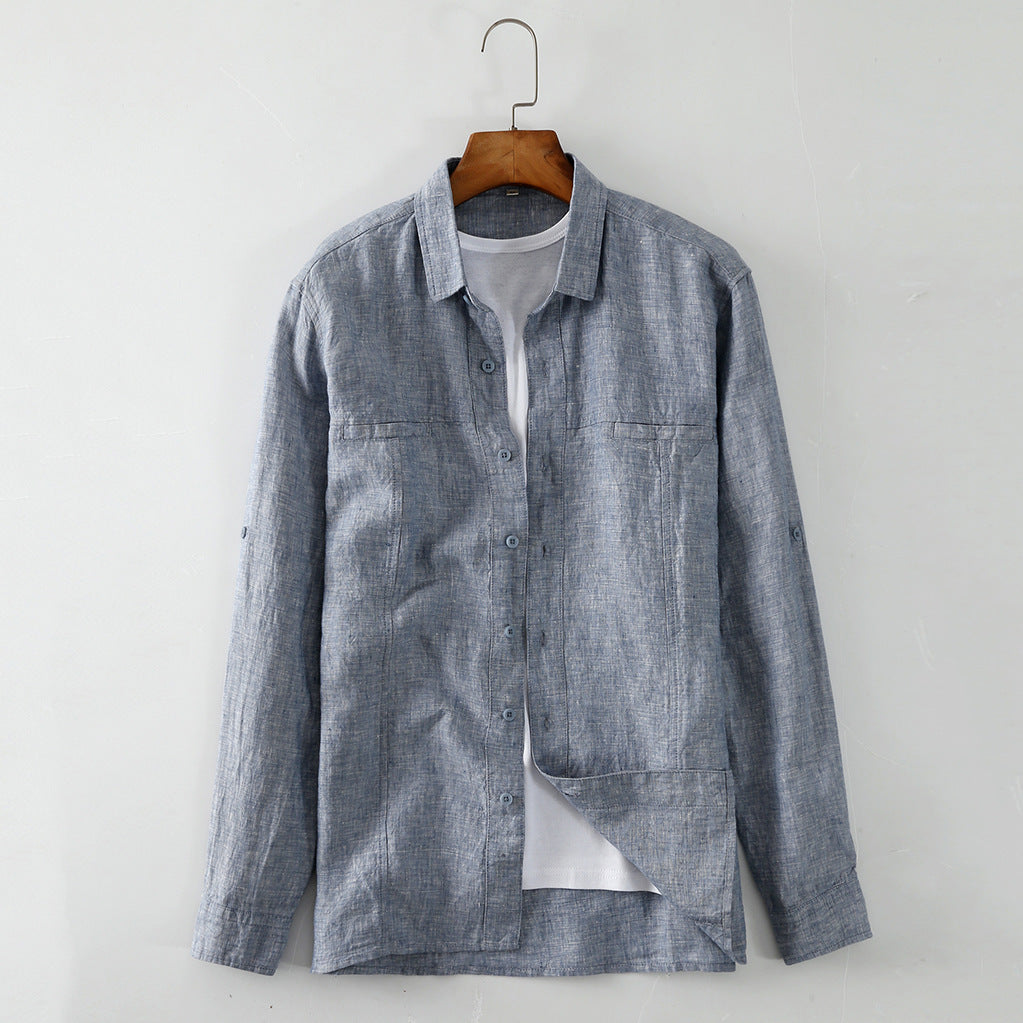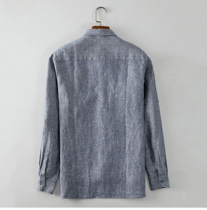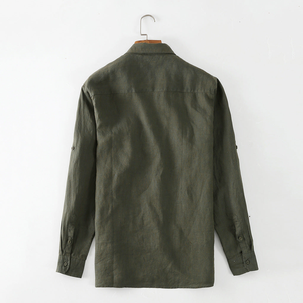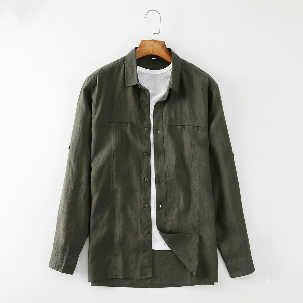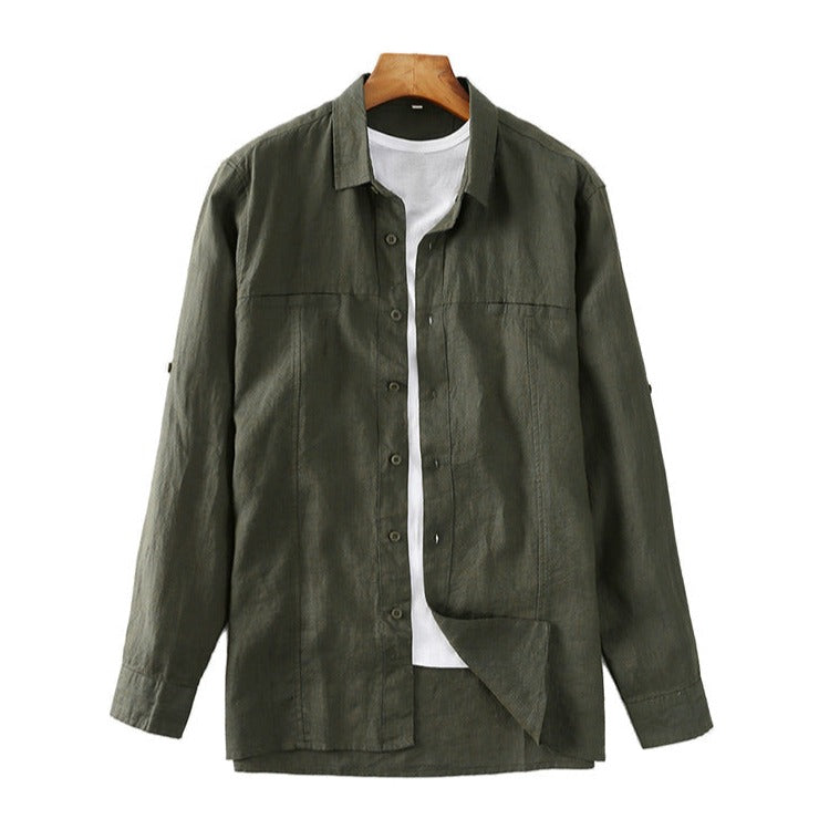 Men's Linen Lapel Patch Pocket Casual Shirt C023