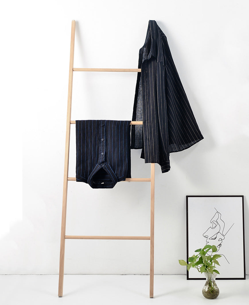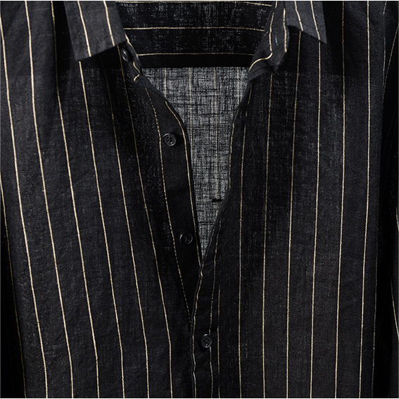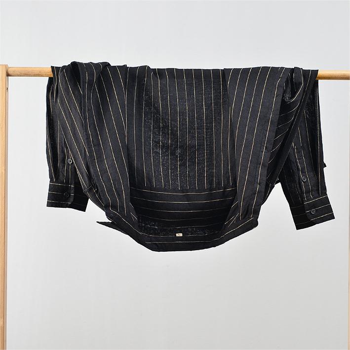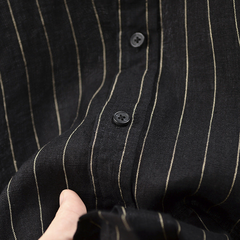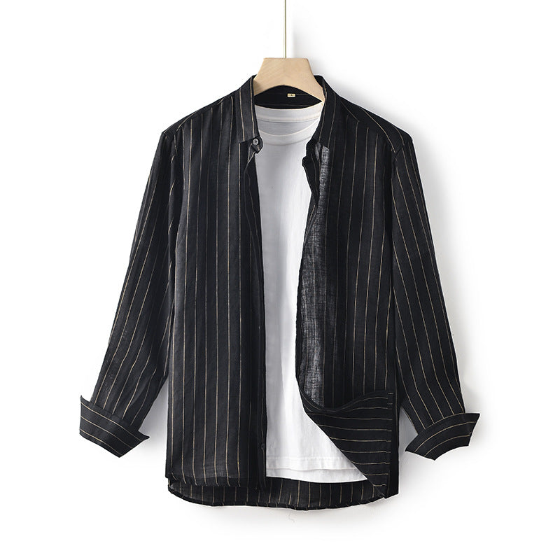 Men's Linen Lapel Striped Long-sleeved Shirt Loose and Breathable F007