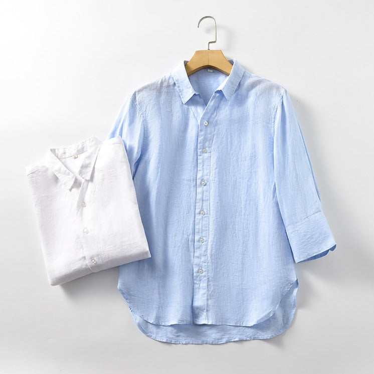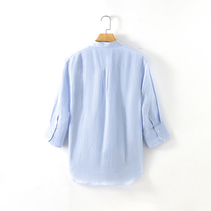 Men's Linen Mid-Sleeved V-Neck Casual Shirt C004