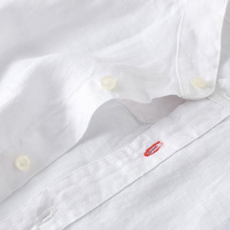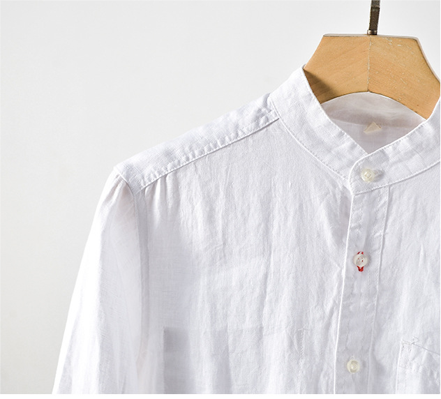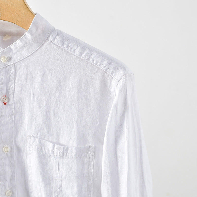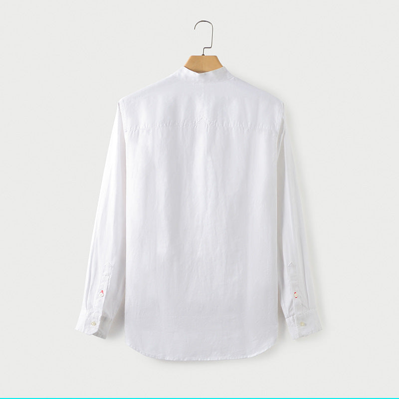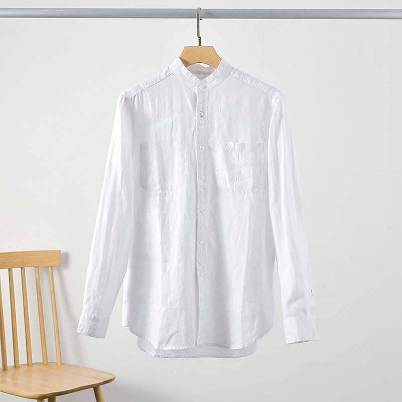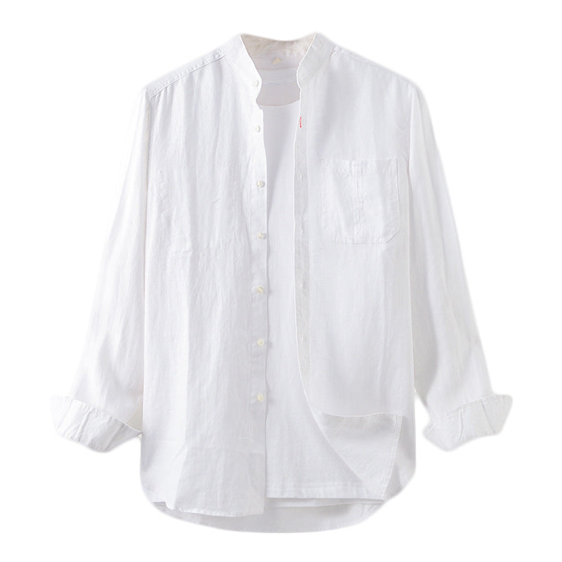 Men's Linen Stand Collar Casual Loose Long Sleeve Shirt A017