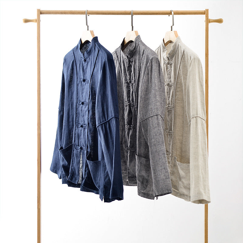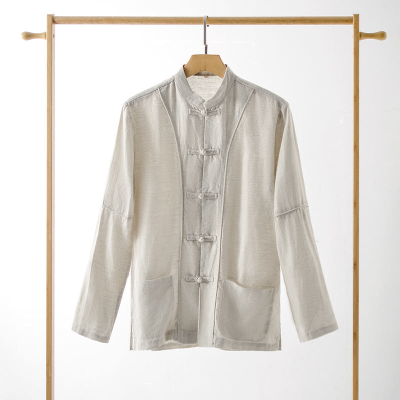 Men's Linen Vintage Long Sleeve Loose Casual Shirt F010