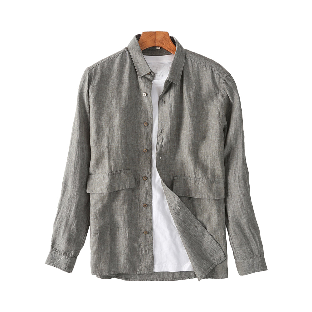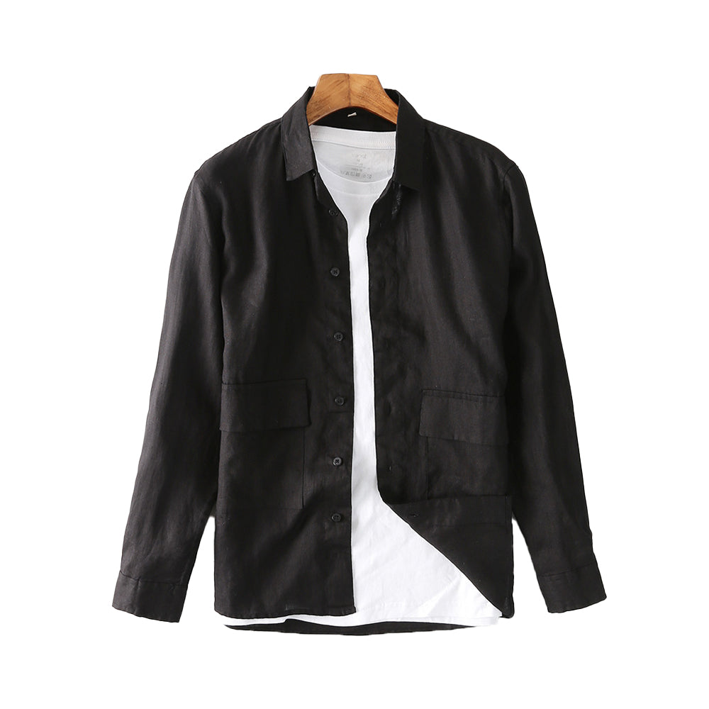 Men's Loose Long Sleeve Linen Shirt Simple Jacket C039
