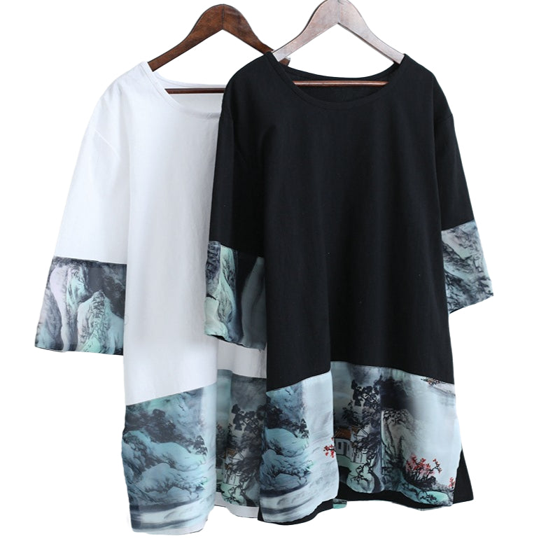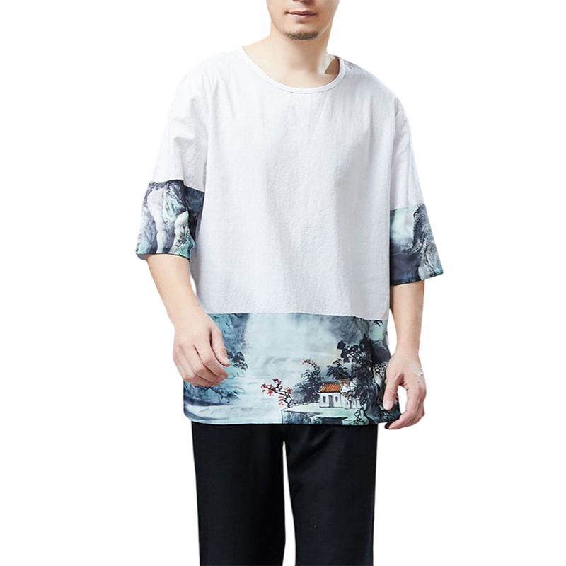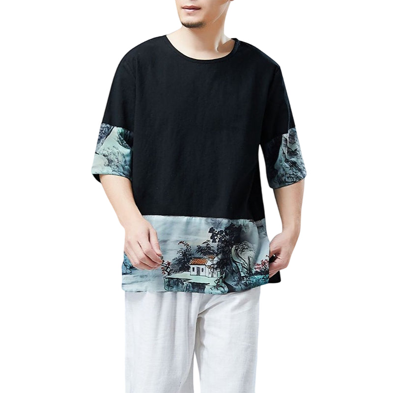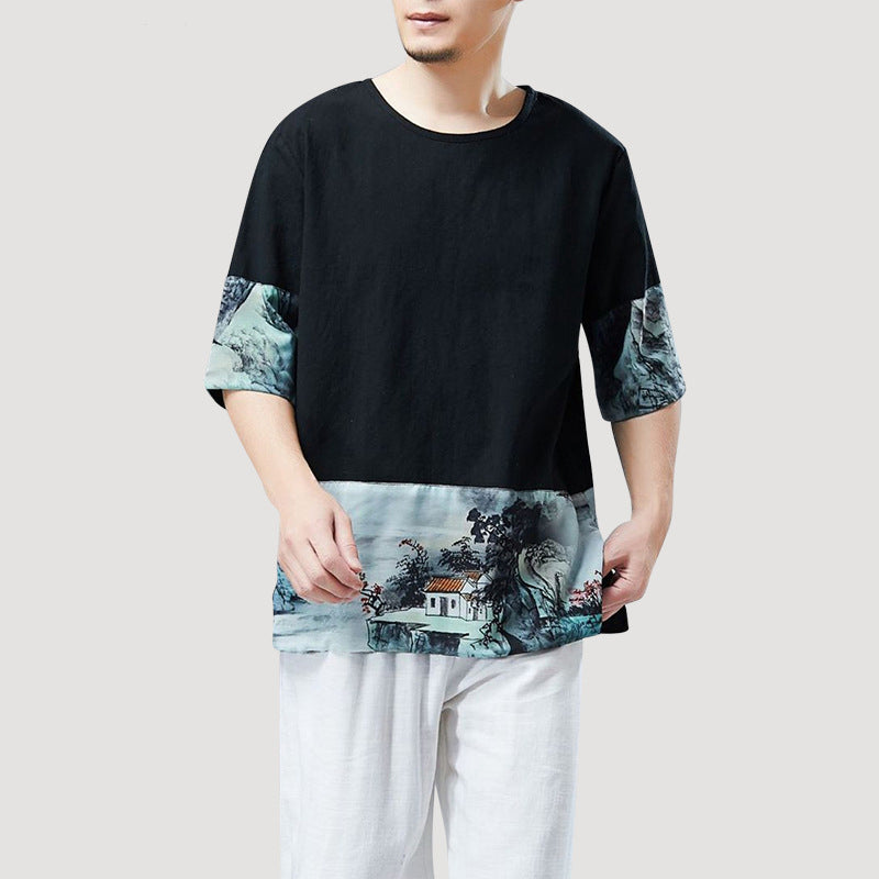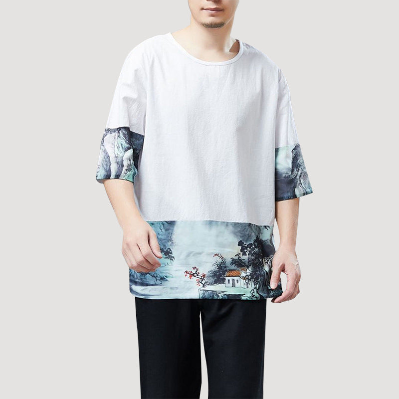 Men's Thin Vintage Graphic Cotton and Linen T-Shirt M005
