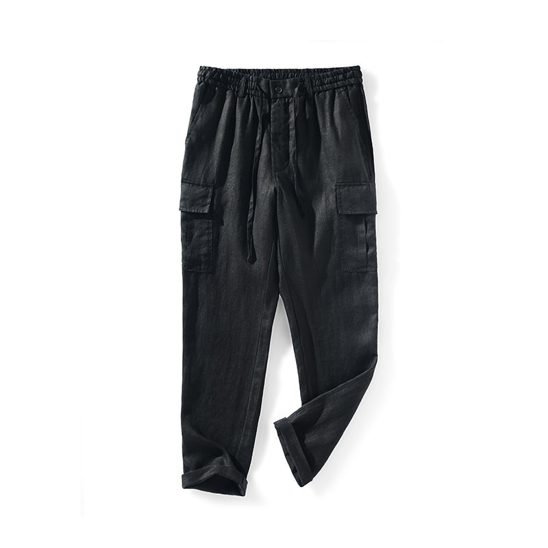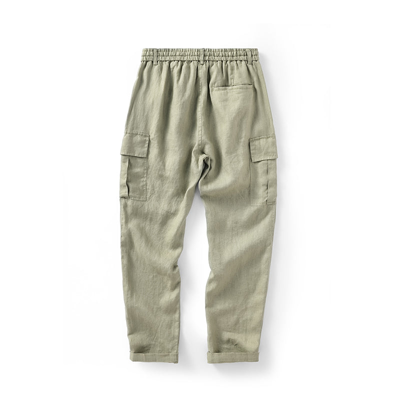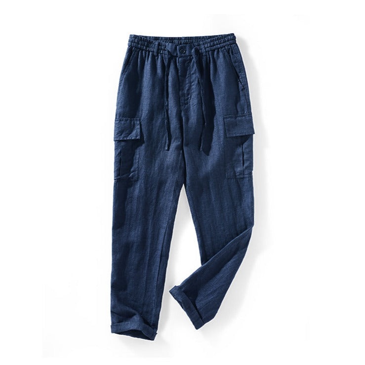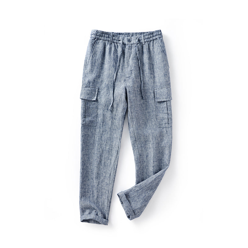 Men's 100% Linen Elastic Waist Drawstring Pants D040