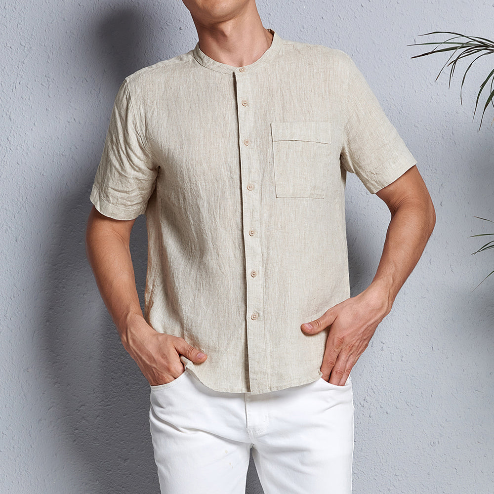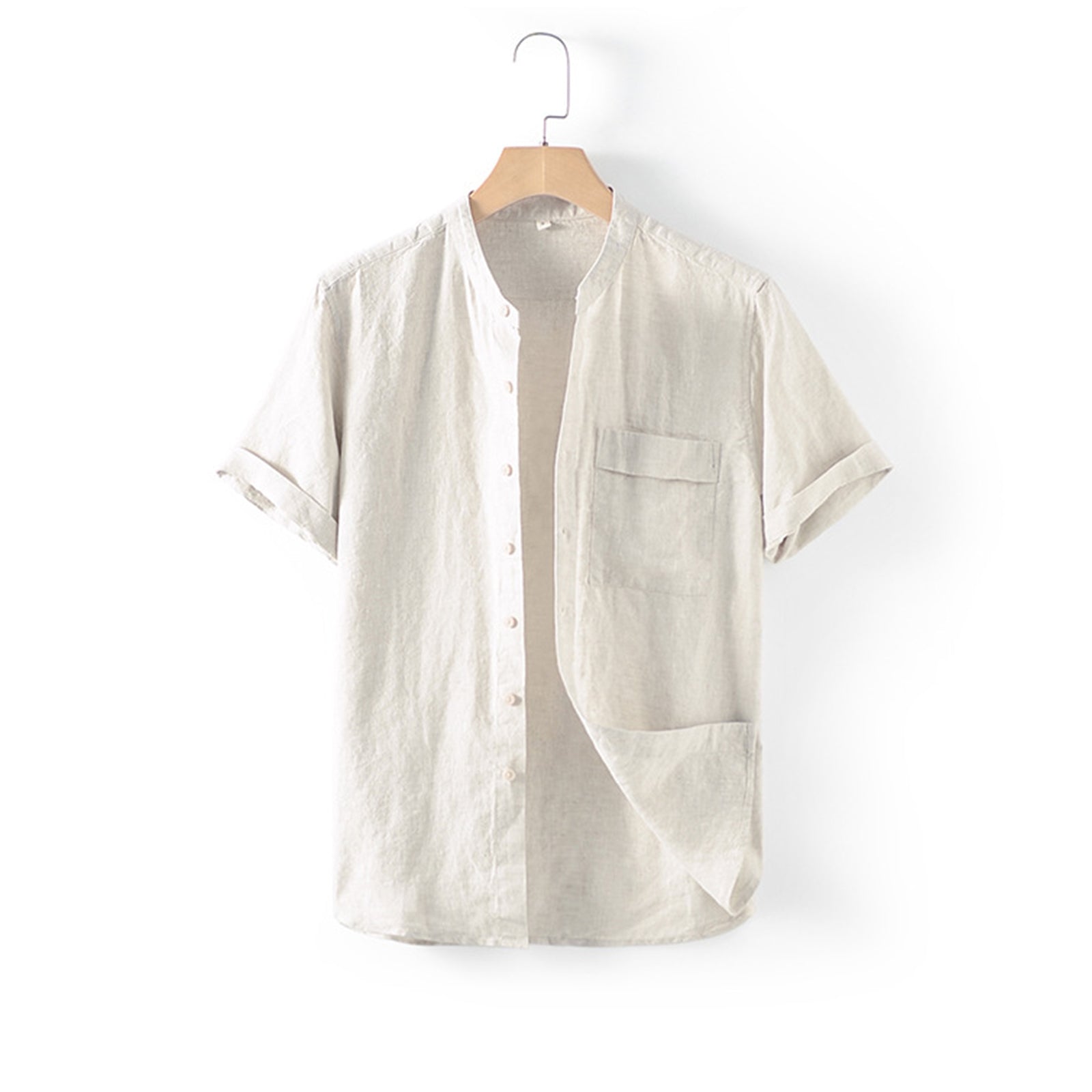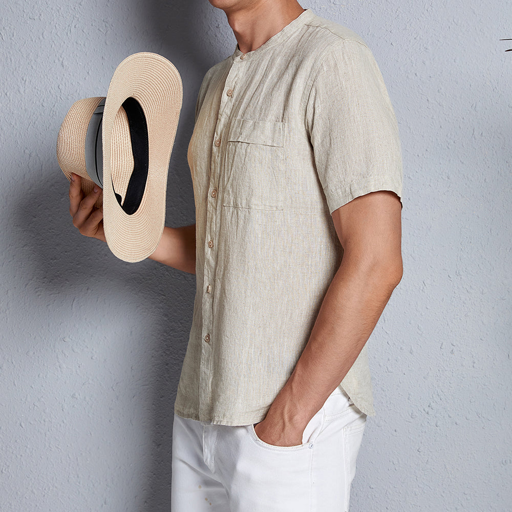 Men's 100% Linen Short Sleeve Button-up Shirts D002