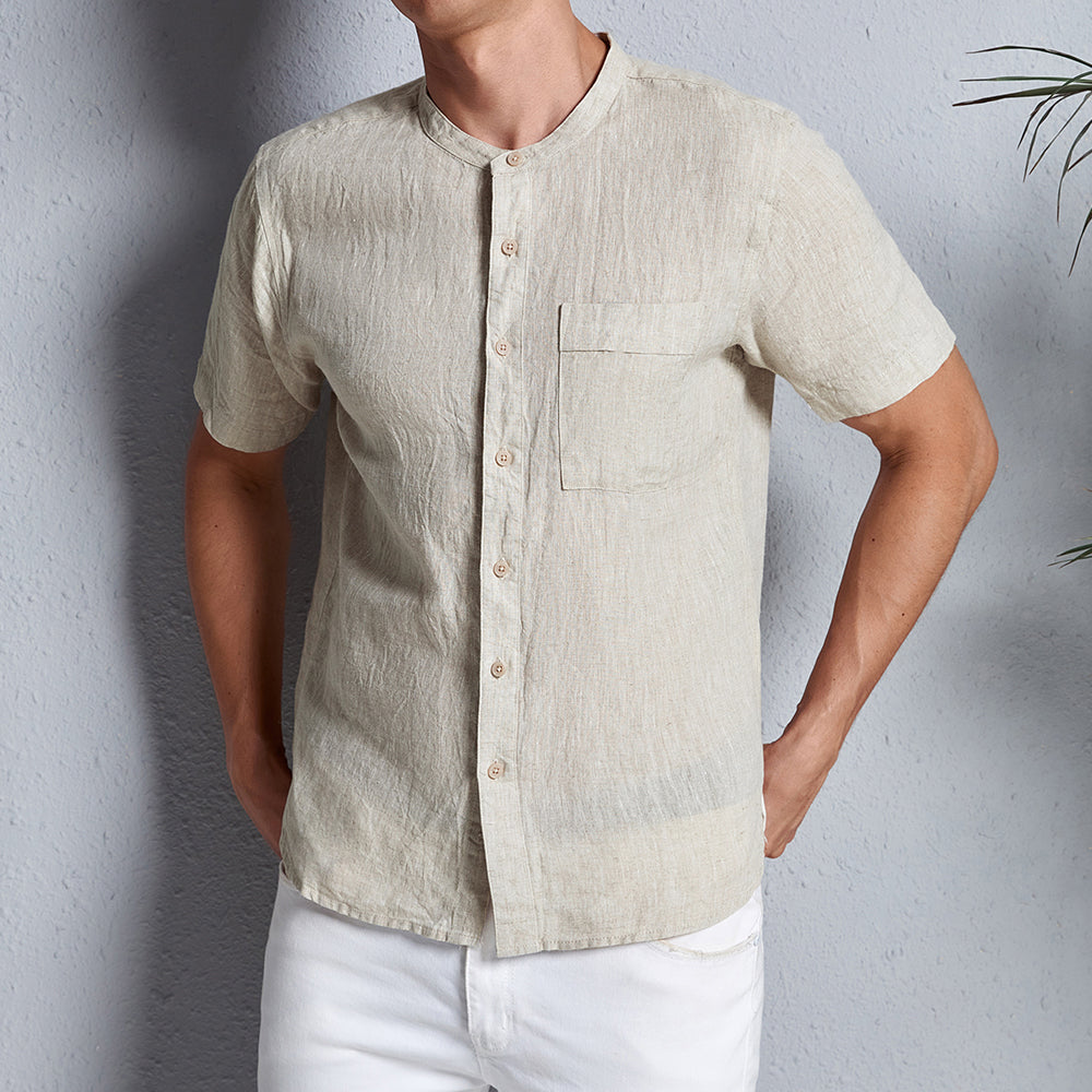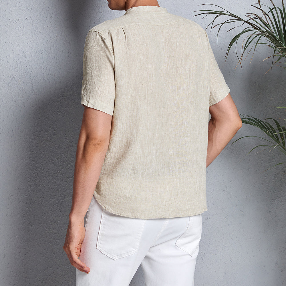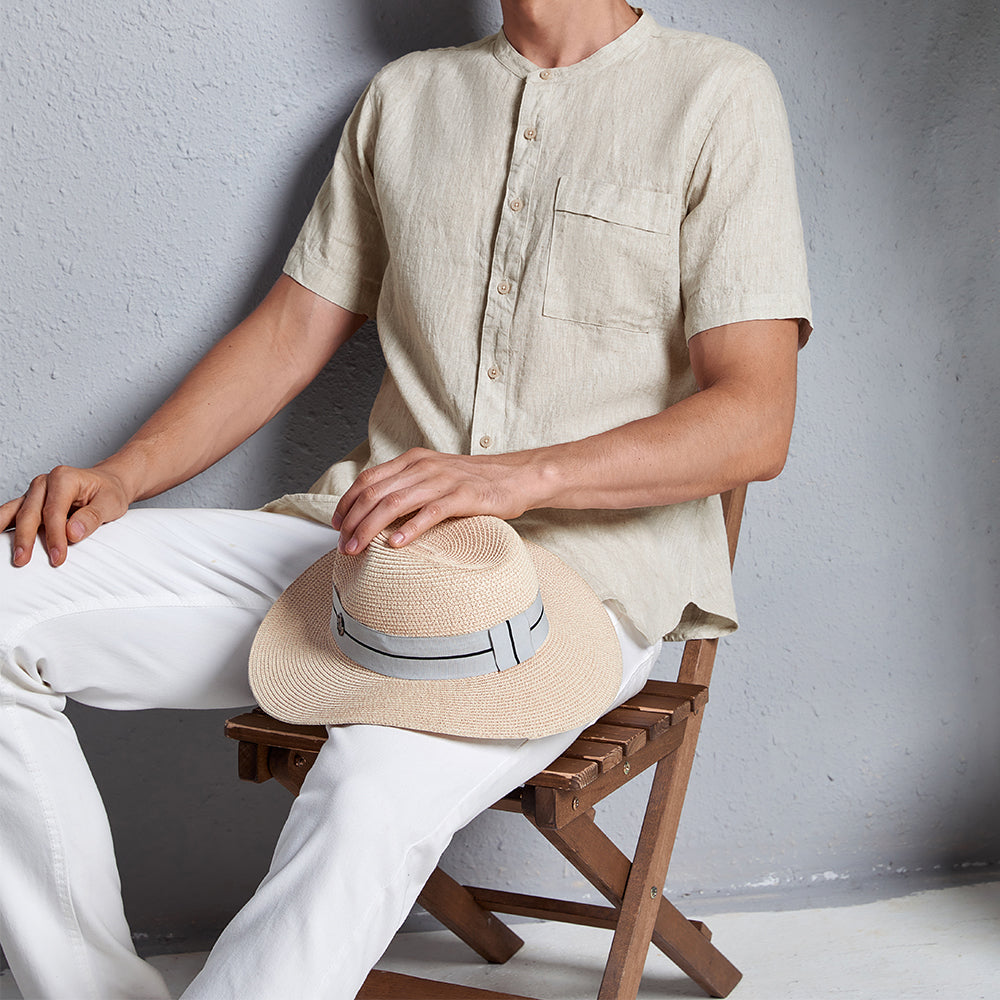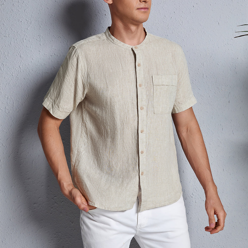 Men's 100% Linen Short Sleeve Button-up Shirts D002