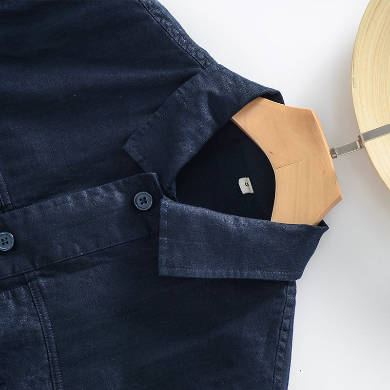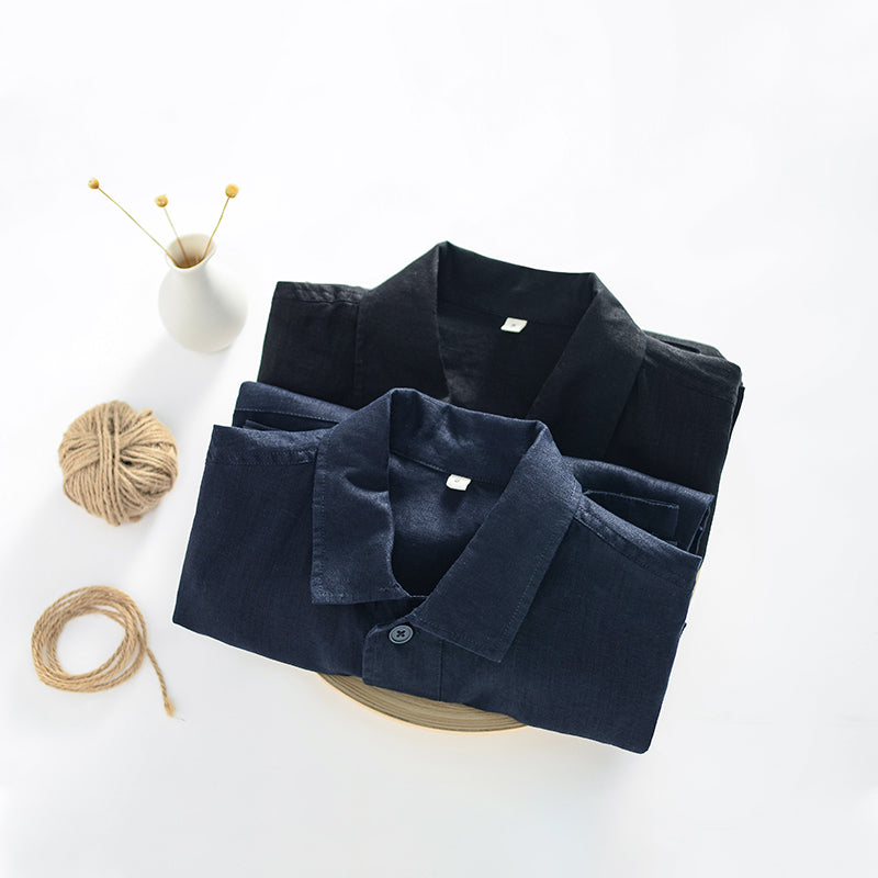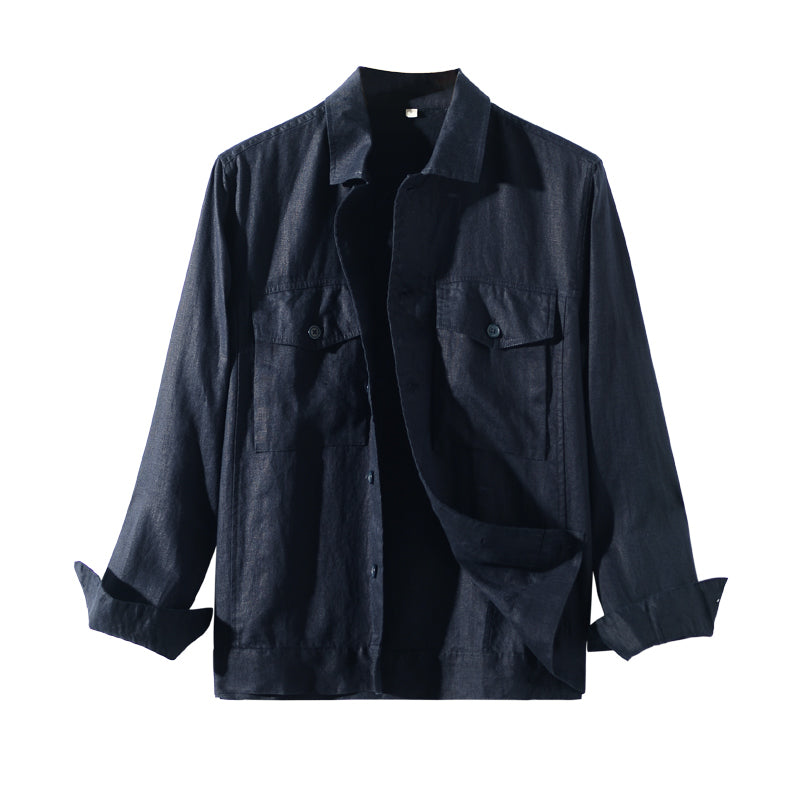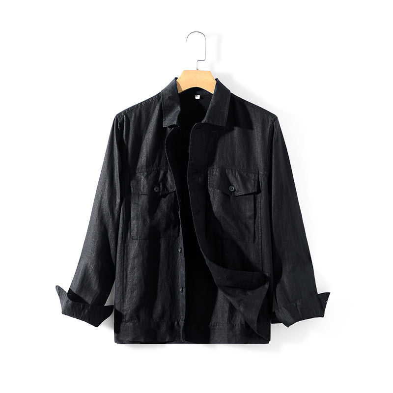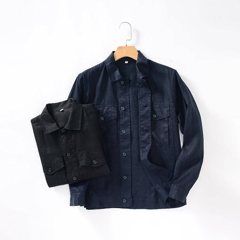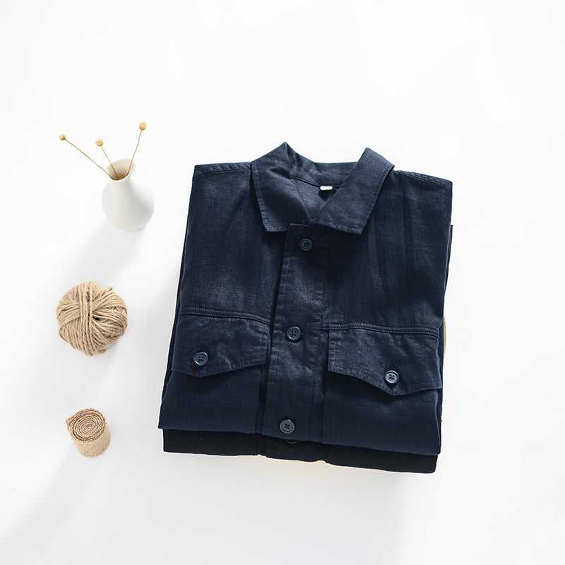 Men's Chest Flap Pocket 100% Linen Long Sleeve Shirts D025