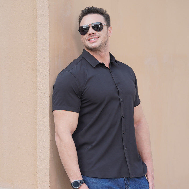 Men's Plus Size Summer Thin Business Casual Short Sleeve Shirt T8850